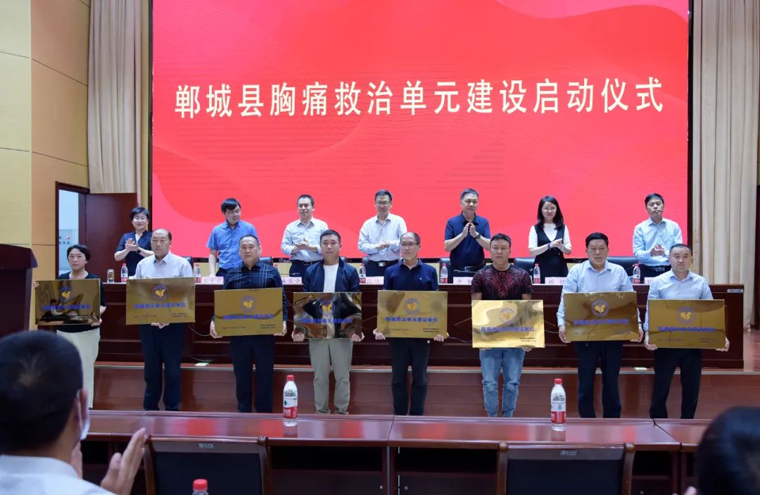 郸城县在全省范围内较早启动胸痛中心和胸痛救治单元建设。其中,县人民医院早在2016年11月启动胸痛中心基层版创建工作,2019年7月通过认证后,于2020年1月启动标准版创建,2020年10月通过三级医院胸痛中心认证,2021年5月通过标准版认证。2021年上半年,县医院胸痛中心在全市质控总分排名中位列第一名,在河南省三级医院胸痛中心关键指标排名第八名。在河南省卫健委组织三级胸痛卒中创伤中心优秀典型病例评比,郸城县人民医院胸痛中心2例典型案例以满分位居“2021年度三级胸痛中心典型案例单项奖”榜首,获一等奖。实际运行中,D2W时间从将近一个小时降至目前的40分钟以内,最短时间仅用10分钟。中医院、中心医院胸痛中心建设和乡镇卫生院胸痛救治单元建设也相继开展,宜路镇、秋渠乡卫生院已经通过胸痛救治单元认证,另有10余家乡镇卫生院完成注册,为确保全县心血管疾病急危重症病人生命安全做出了突出贡献。郸城县胸痛救治单元建设启动后,将持续提升胸痛救治水平,构建“胸痛中心—胸痛救治单元—村卫生室—患者”四级防治救治体系,让基层病人能够第一时间得到诊断,并快速进入胸痛救治绿色通道,在最短的时间内让病人得到规范的救治,真正守护好一方百姓的健康安全。启动仪式主会场设在县委党校,刘清俊主持仪式。县卫健委相关股室负责人,各集团总医院分管副院长及相关科室负责人、相关专业技术人员,120急救指挥中心负责人,各乡镇卫生院长、社区卫生服务中心主任,各民营医院院长参加。各集团总医院、各乡镇卫生院设分会场。