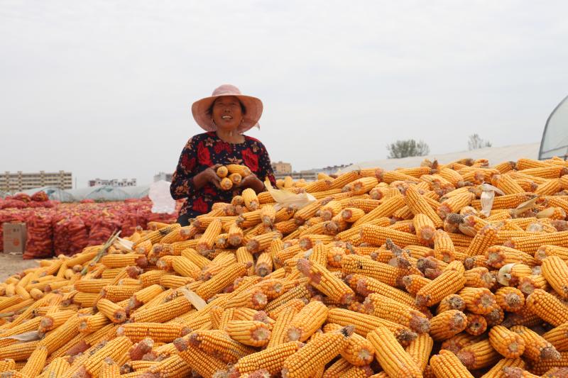 丰收的喜悦,金色的希望。金黄的玉米给群众带来了无限“钱”景。②10