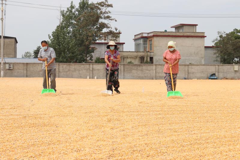 九里行政村村民苏铁场的晒场上,堆放着小山般的玉米。今年,苏铁场种植的600亩玉米喜获丰收,他的妻子坐在玉米堆上笑得合不拢嘴。