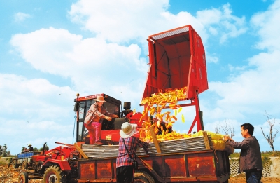聊起机械收获玉米的好处,付井镇王寨村党支部书记王运启眉飞色舞。“玉米机械化收割,一次能完成玉米茎秆切割、摘穗、剥皮、集穗、秸秆粉碎等多项作业,秸秆打碎还田,既保护环境,又给土地增了肥,增加了村民的种植效益。”