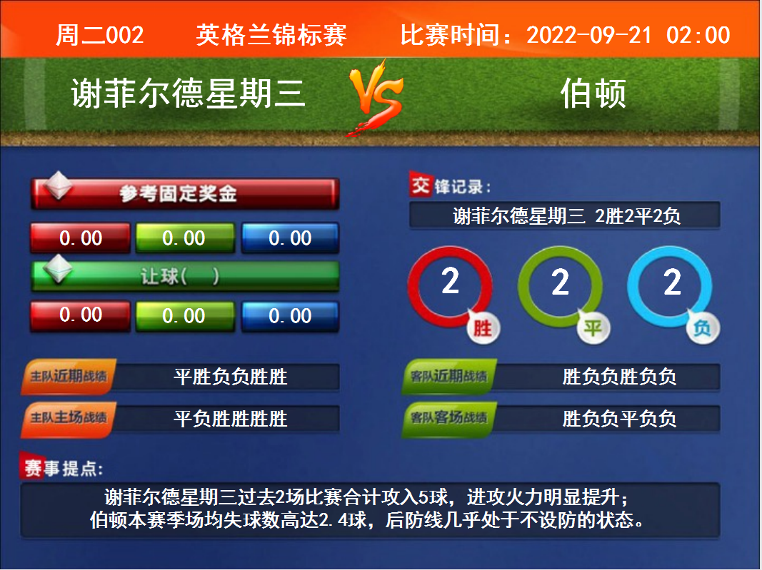 比赛时间:2022-09-21 02:00赛事提点:谢菲尔德星期三过去2场比赛合计攻入5球,进攻火力明显提升;伯顿本赛季场均失球数高达2.4球,后防线几乎处于不设防的状态。