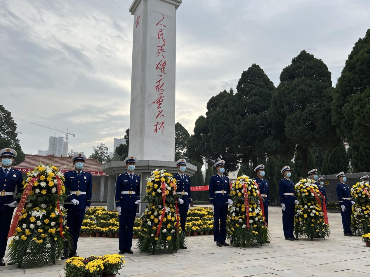 苍松翠柏掩映下的烈士陵园,显得格外庄严肃穆。上午8时,公祭仪式在庄严雄壮的中华人民共和国国歌声中正式开始,全场人员肃立,向为中国人民解放事业英勇献身的烈士们默哀。
