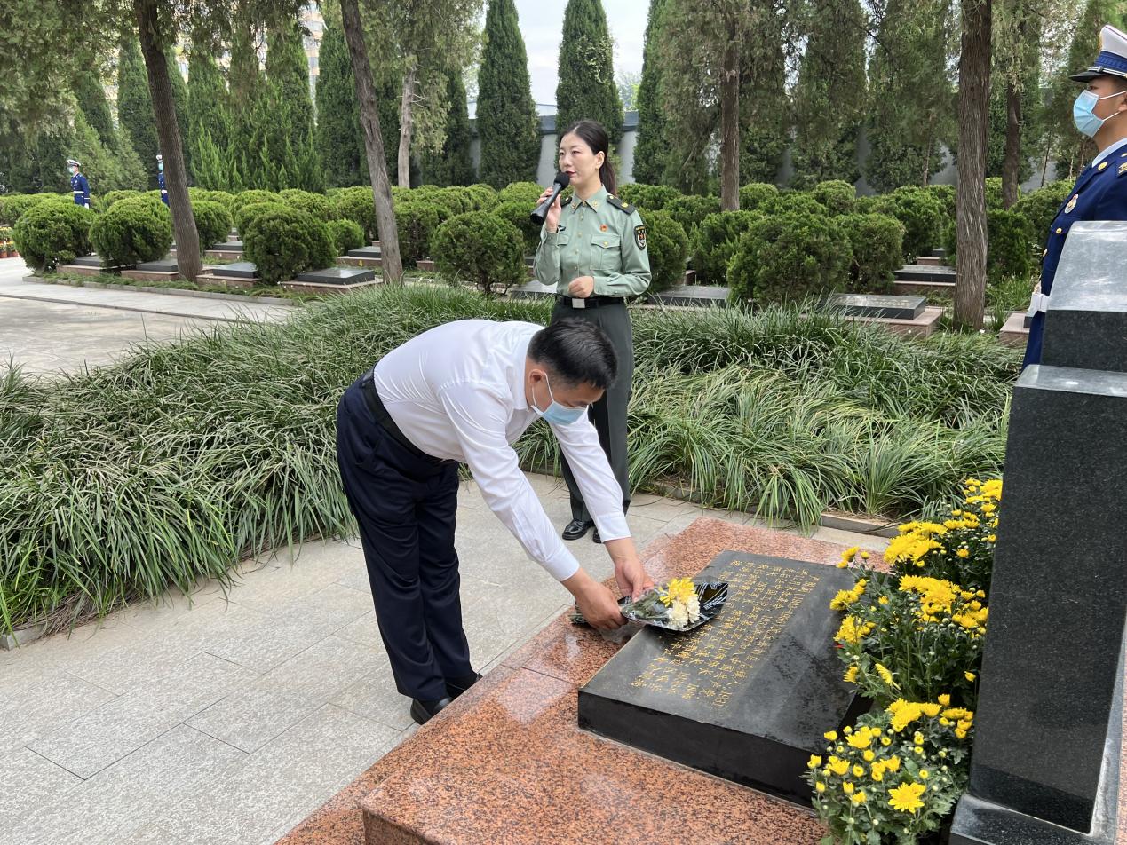 随后,田庆杰等一行人依次走上前来为烈士墓献上手中鲜花并瞻仰纪念碑,深切缅怀为民族独立、人民解放和社会主义建设而英勇牺牲的革命先烈。