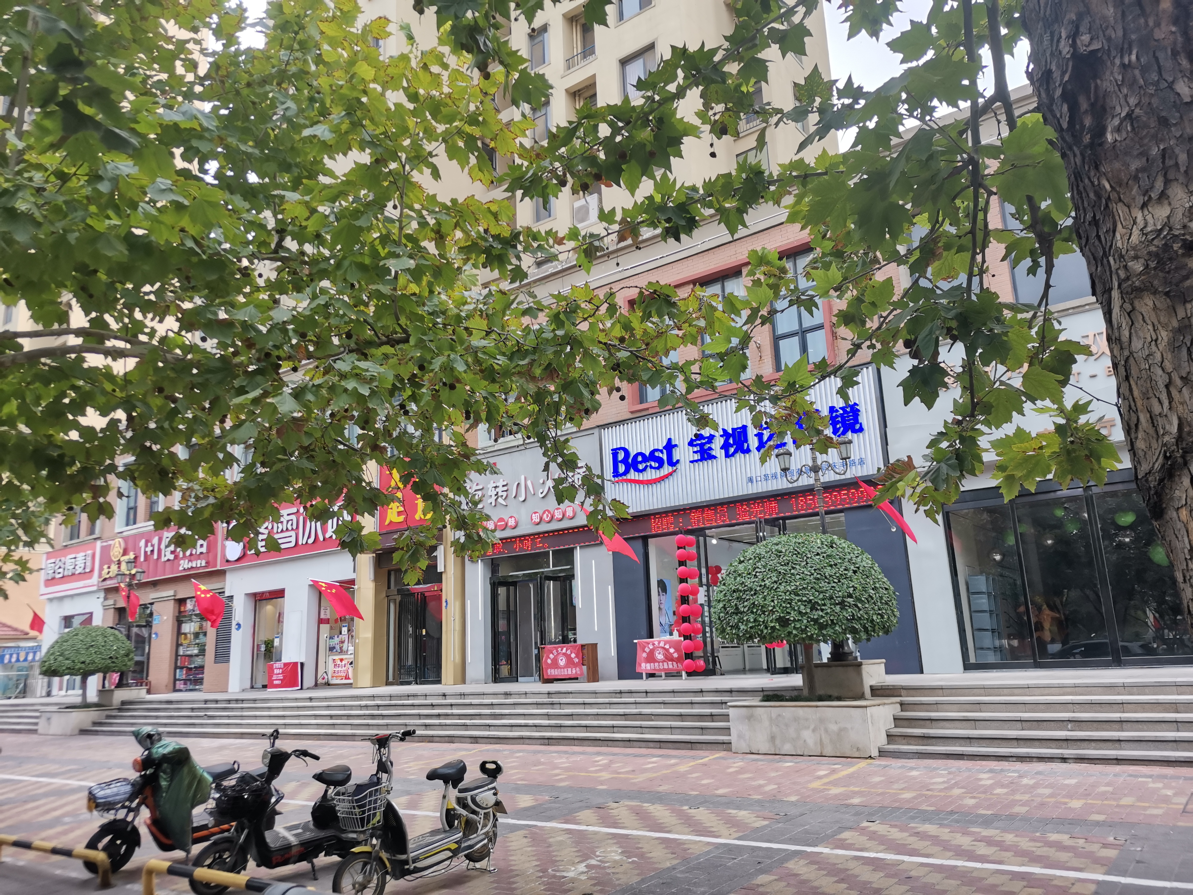 城区街头国旗飘 同贺国庆氛围浓