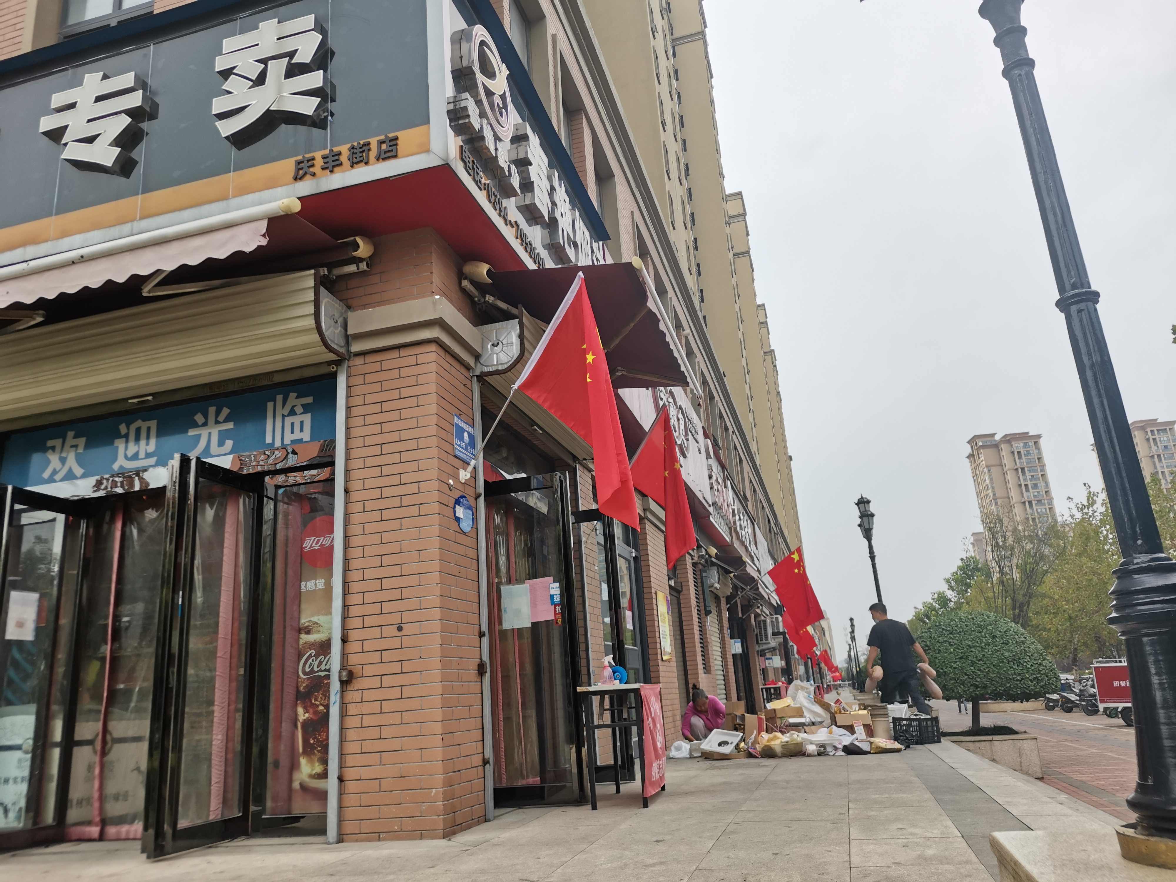 “十一国庆节快到了,在这个举国同庆的日子里,我们自发在我们的店门口悬挂国旗,营造喜庆氛围,同时也希望我们的祖国越来越好,繁荣昌盛,发展得越来越好。”在庆丰路上经营餐馆的王先生说。