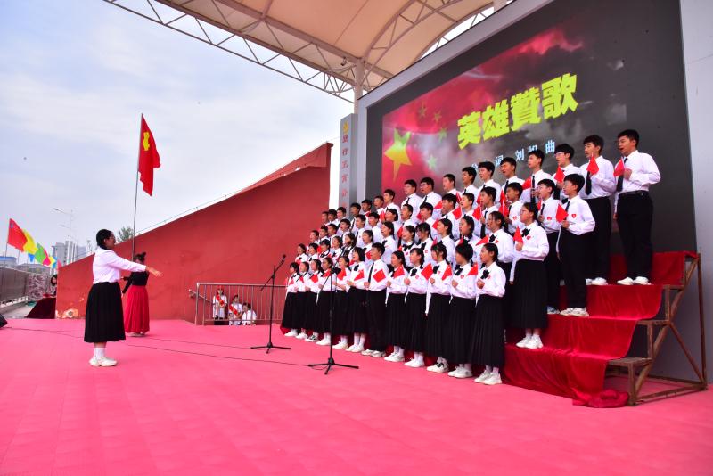 在比赛活动开始前,学校组织了主题合唱《领航》开启了活动序幕。接下来,高一年级代表队演唱了《长征组歌: 过雪山草地》;高一年级富洲部代表队演唱了《南泥湾》;高二年级代表队演唱了《最可爱的人》;高二年级富洲部代表队演唱了《我的祖国》;高三年级代表队演唱了《我的中国心》;高三年级富洲部代表队演唱了《走进新时代》;初中部九年级代表队演唱了《英雄赞歌》。艺体部常博涵等同学还带来了豫剧《红色娘子军》的精彩演唱,让全场师生大为点赞。在比赛中,各个团队均进行了认真准备,拿出了最强阵容,无论唱腔和舞美设计,在舞台展示了最佳形象。