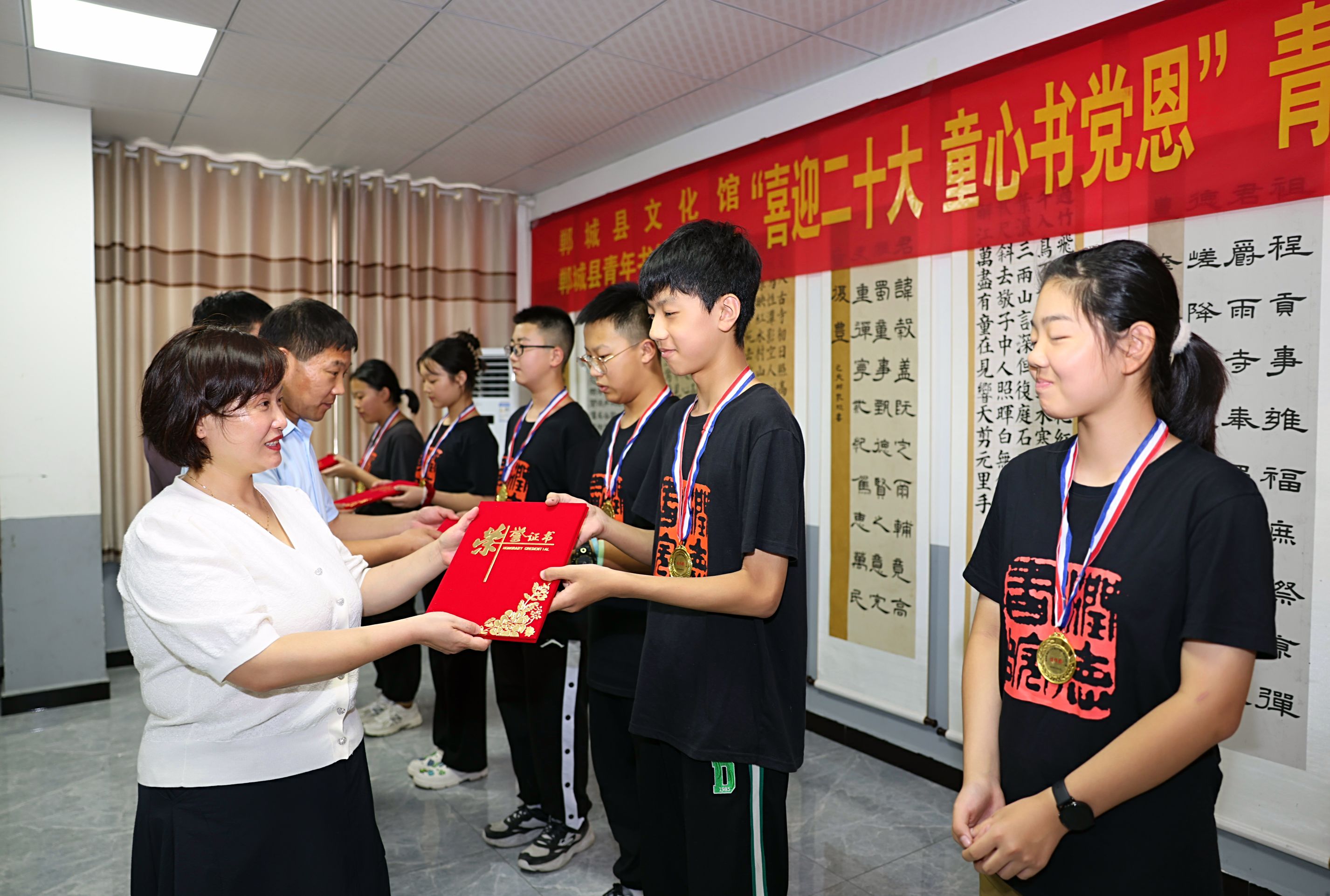为庆祝国庆节、喜迎党的二十大胜利召开,传承和弘扬中华优秀传统文化,培育书法新苗,10月1日上午,由郸城县文化馆主办、郸城县青年书法家协会承办的“喜迎二十大 童心书党恩”青少年书法大赛在润德书院举行。
