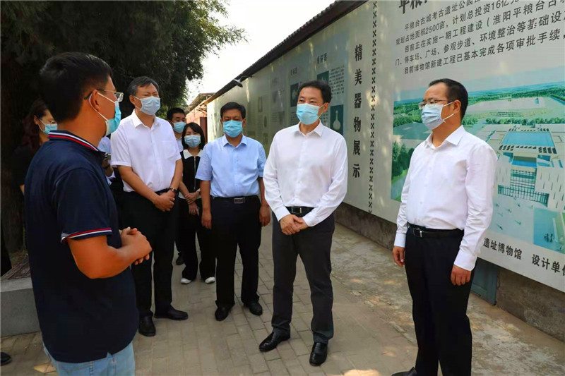 张建慧来到平粮台古城遗址,详细了解文化古迹的考古发掘、古城遗址保护和活化利用情况。他指出,平粮台古城遗址文化积淀深厚,形象展示了龙山时期居民的居住形式、生活场景和生活智慧,在城市发展史上具有里程碑式的突出价值,揭示出龙山时代大背景下广泛的跨区域文化交流与融合现象,对认识国家文明的起源具有重大意义,是中华文明探源工程的重要线索。要本着对历史负责、对人民负责的精神,传承历史文脉,坚定文化自信,加强历史文化遗产保护与利用,尽最大努力把平粮台古城遗址保护好、修复好、展示好,加大平粮台古城考古发掘力度,用考古的丰硕成果来彰显周口深厚的历史文化底蕴。