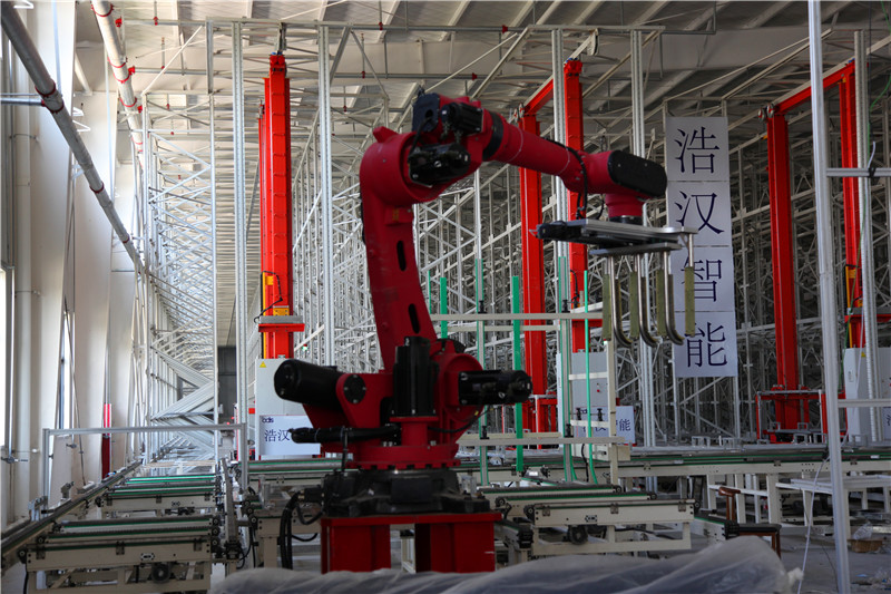 盛泰纺织机器人在有序作业(马治卫 摄)
