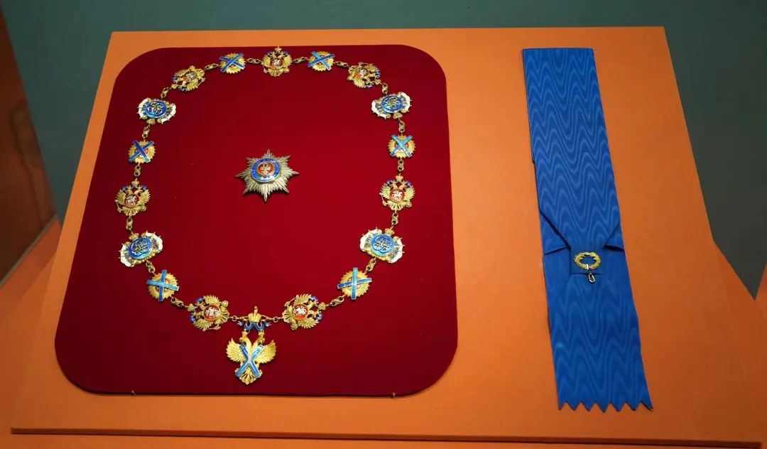 2017年7月,俄罗斯总统普京授予习近平主席的“圣安德烈”勋章。(摄影/胡杨)