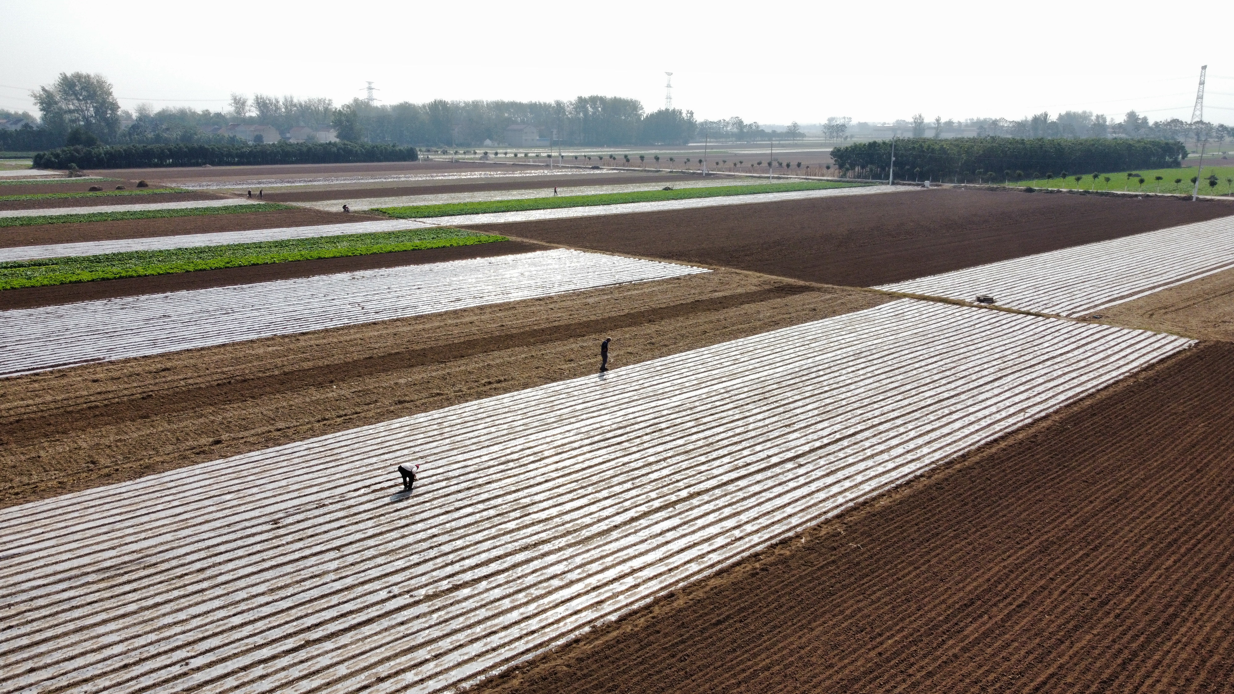 10月15日,周口市淮阳区王店乡刘老家村的蒜地里,村民正忙着播种、覆膜、提苗……