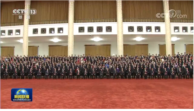 下午4时,习近平等步入宴会厅,全场响起长时间热烈的掌声。习近平等向大家挥手致意,不时停下脚步同前排的同志亲切交流。代表们纷纷向习近平等领导同志问好,表达诚挚的敬意,送上热情的问候。大厅内,真情涌动、暖意融融,掌声、欢呼声经久不息。