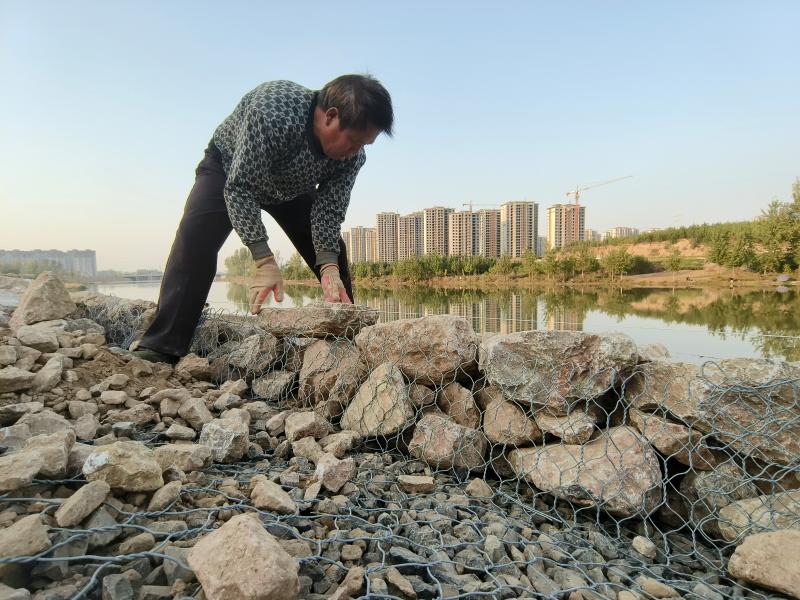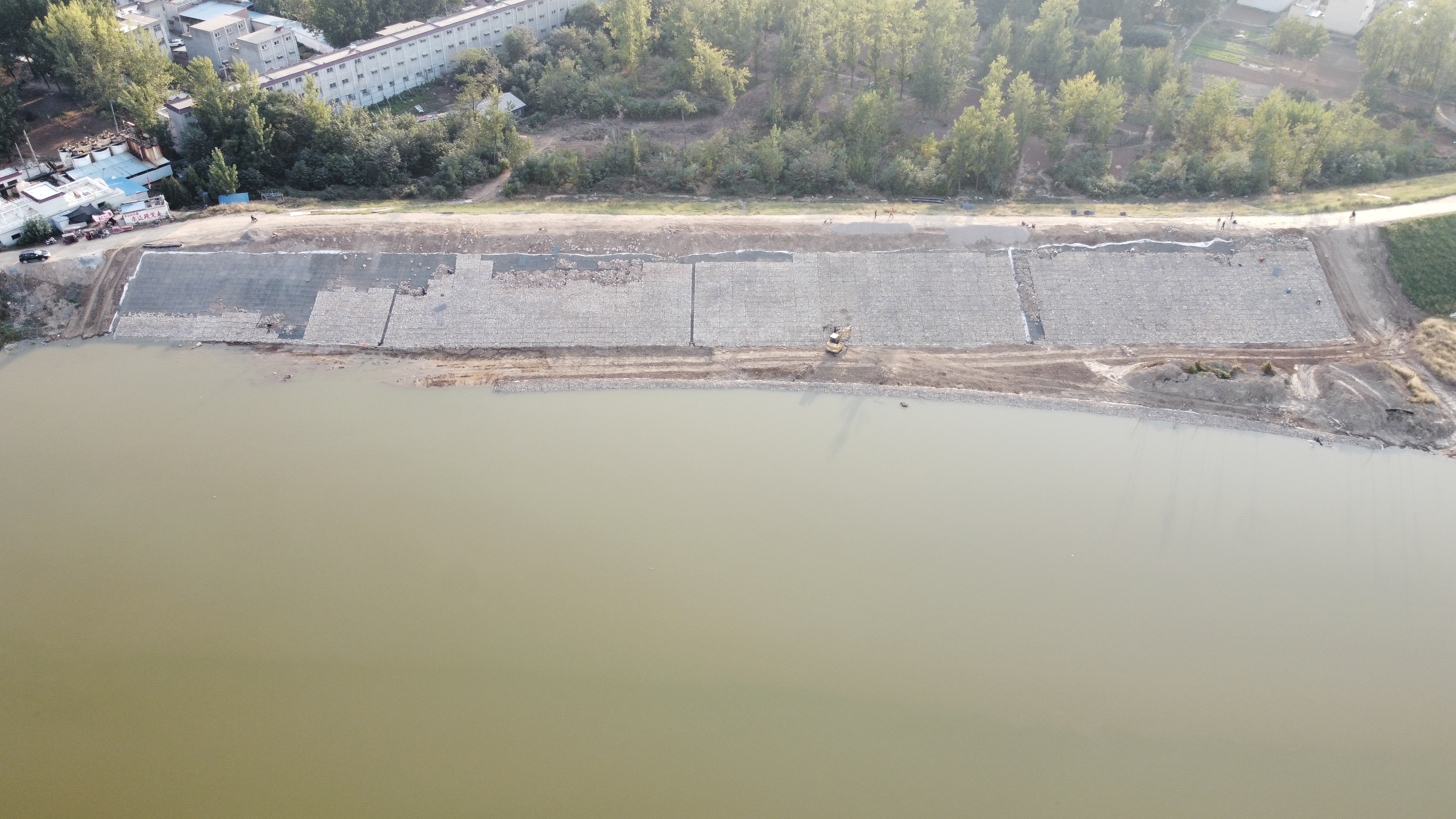 10月19日,在贾鲁河综合治理工程川汇区段施工现场,工人们正在加固贾鲁河大堤。连日来,趁着天气晴好的有利时机,周口市贾鲁河综合治理工程项目建设如火如荼有序推进,全力以赴确保项目如期完工。①9周口日报·周道客户端记者 刘俊涛 摄