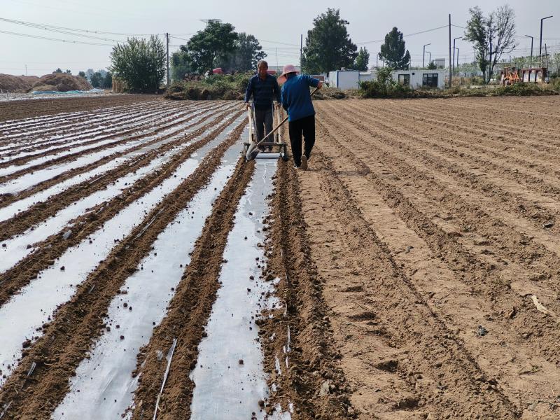 淮阳区王店乡刘老家村的蒜地里,村民正忙着播种、覆膜、提苗(10月15日摄)。近年来,王店乡全力打造无公害大蒜种植基地,建立起集大蒜种植、加工、营销于一体的现代农业产业体系。①9