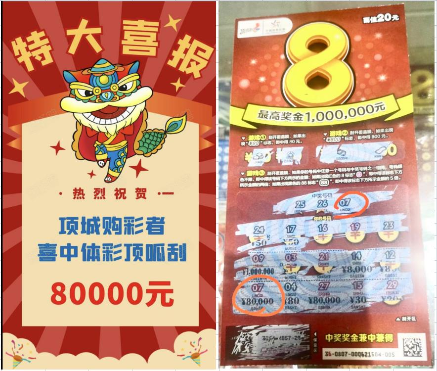 近日,周口项城市购彩者张先生(化名)来到周口体彩分中心办理了兑奖手续。他刮的一张顶呱刮“超值8”即开型彩票中得8万元大奖。