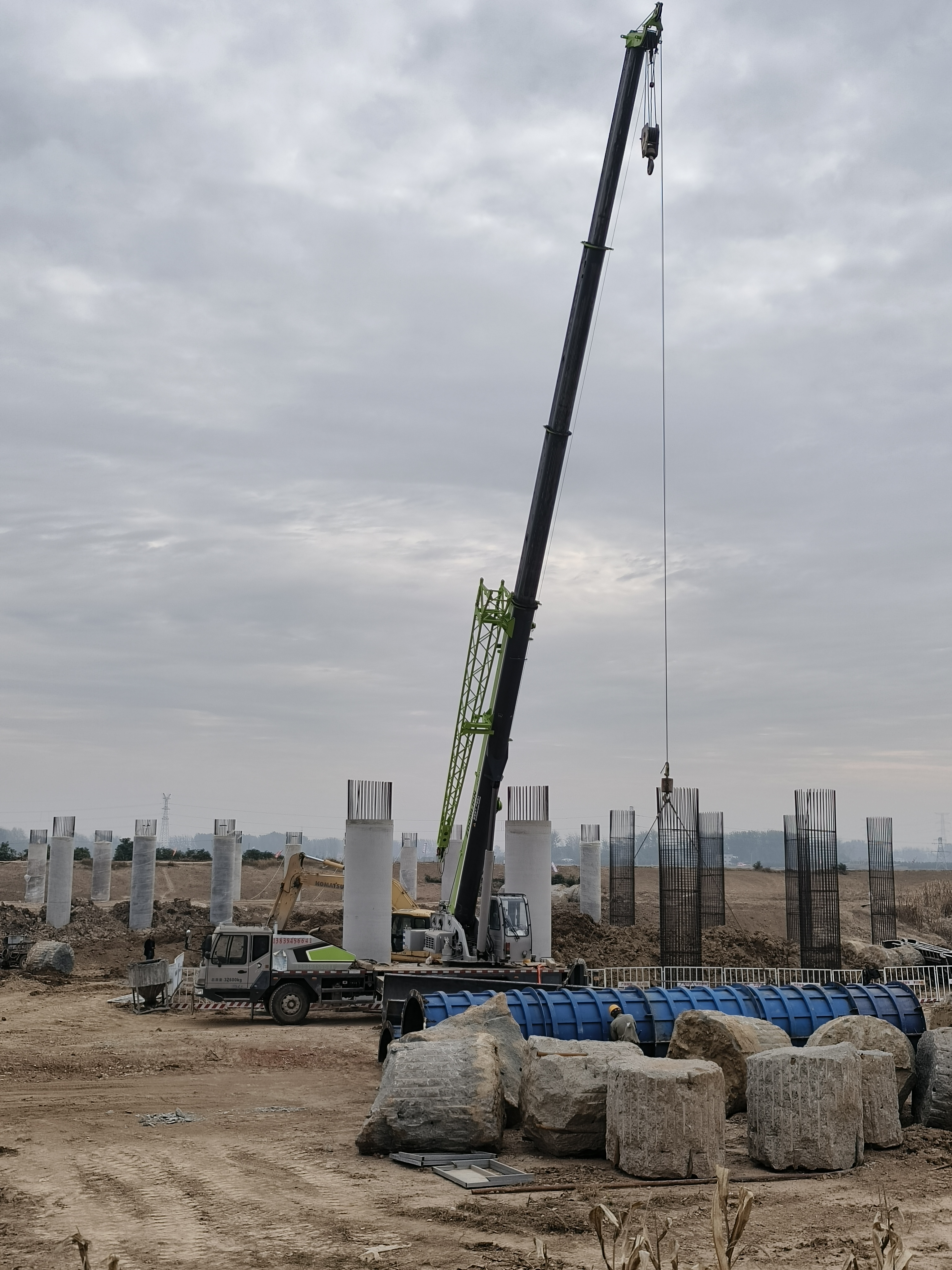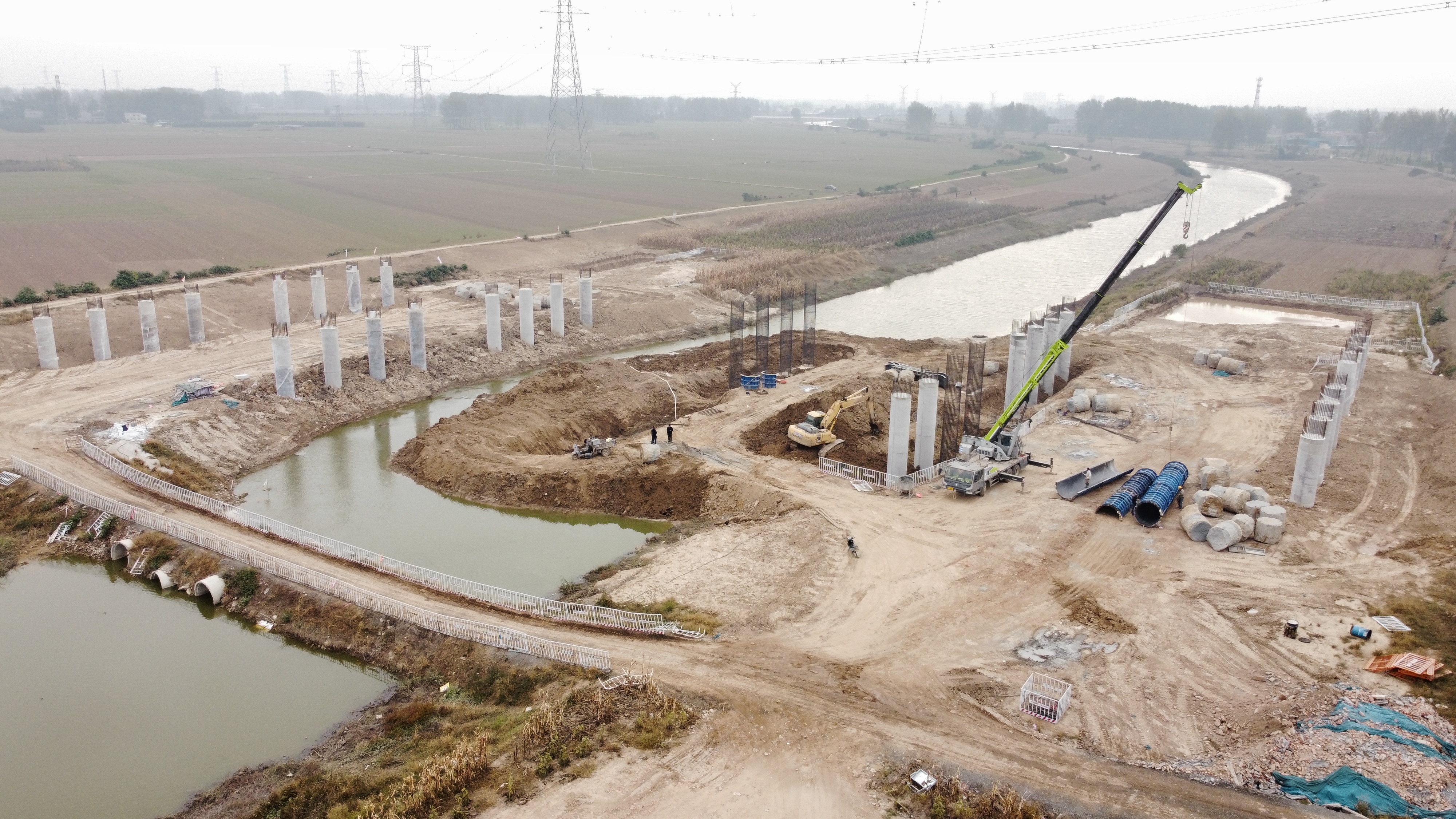 10月25日,周口高铁片区至淮阳快速通道新运河桥桥梁建设工程正在紧张施工。连日来,按照市全力以赴推进周口高铁片区至淮阳快速通道等市域快速通道各项工作,让城市景观更加优美、群众出行更加便捷的主导思想,周口高铁片区至淮阳快速通道新运河桥桥梁建设工程正有序推进。记者 刘俊涛 摄