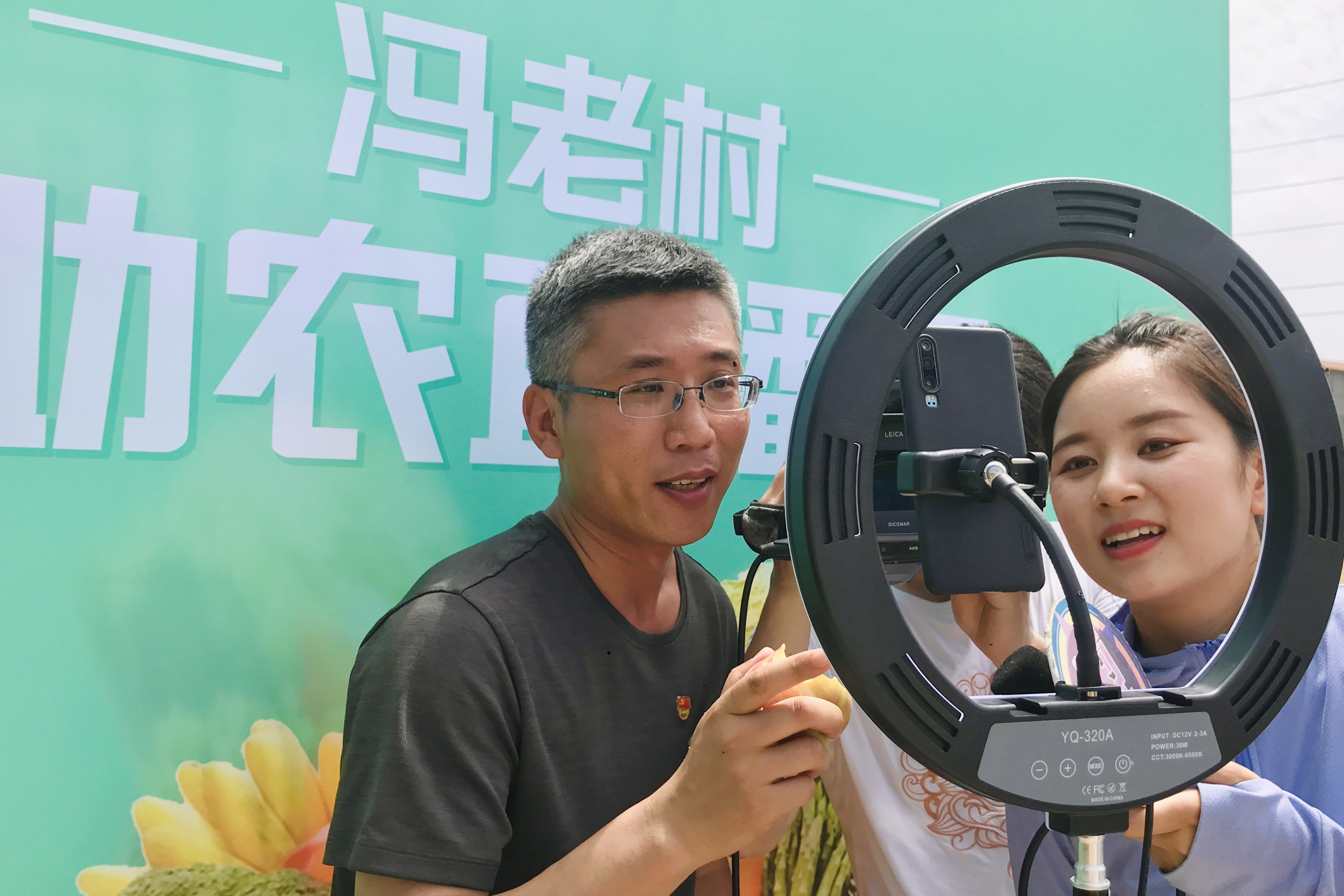 “前两任第一书记已经修了路、盖了房、建了厂,我来了要想办法把产品做成商品卖出去,把老百姓的好收成变成实实在在的好收入!”苏楠想到了时下最火的直播带货,想为冯老村农产品的品牌化推开一扇窗。2020年6月,冯老村联系河南电视台和联想集团助农服务平台——联想“莉”量项目组,由联想集团为冯老村捐赠价值2万多元的电脑、平板、声卡、打光镜和背景板等直播设备,建成了“冯老村助农直播间”。