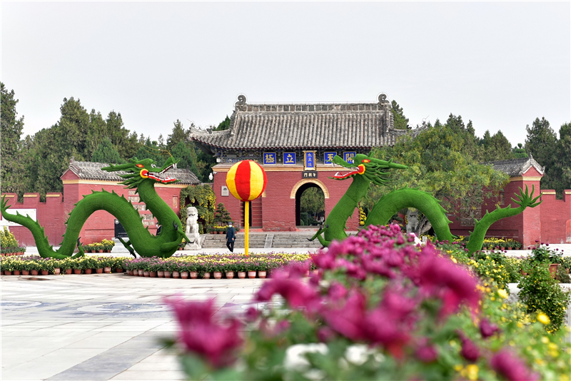 10月27日,伴随着太昊陵开园,以“菊韵、人文、自然、和谐”为主题的太昊陵第五届金秋菊展也正式拉开帷幕。本次金秋菊展分盛世中华、巨龙腾飞、文化振兴、自然和谐、龙园菊韵、羲陵菊香、精菊有约等七大主题,精品菊花观赏区、特色菊花造型区、仿真造型游览区、精品盆景展示区、双龙戏珠吉祥区、特色文化造型区等数十个板块。一场由约20余万株菊花烹制的菊展盛宴正等待广大游客的到来。