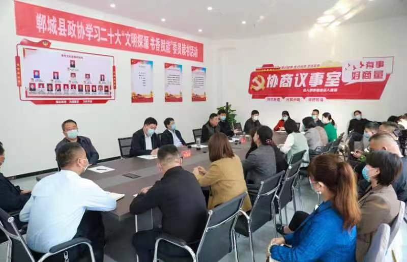 10月31日,郸城县政协举办学习贯彻二十大精神“文明探源 书香赋能”委员读书活动。深入学习贯彻党的二十大精神,坚定文化自信、探源中华文明,深入挖掘周口文化资源,切实把政协组织和广大政协委员的思想和行动统一到党的二十大精神上来。县政协主席王伟,副主席王岩、张振新,秘书长朱东风出席活动。住郸省市政协委员和部分县政协委员参加活动。