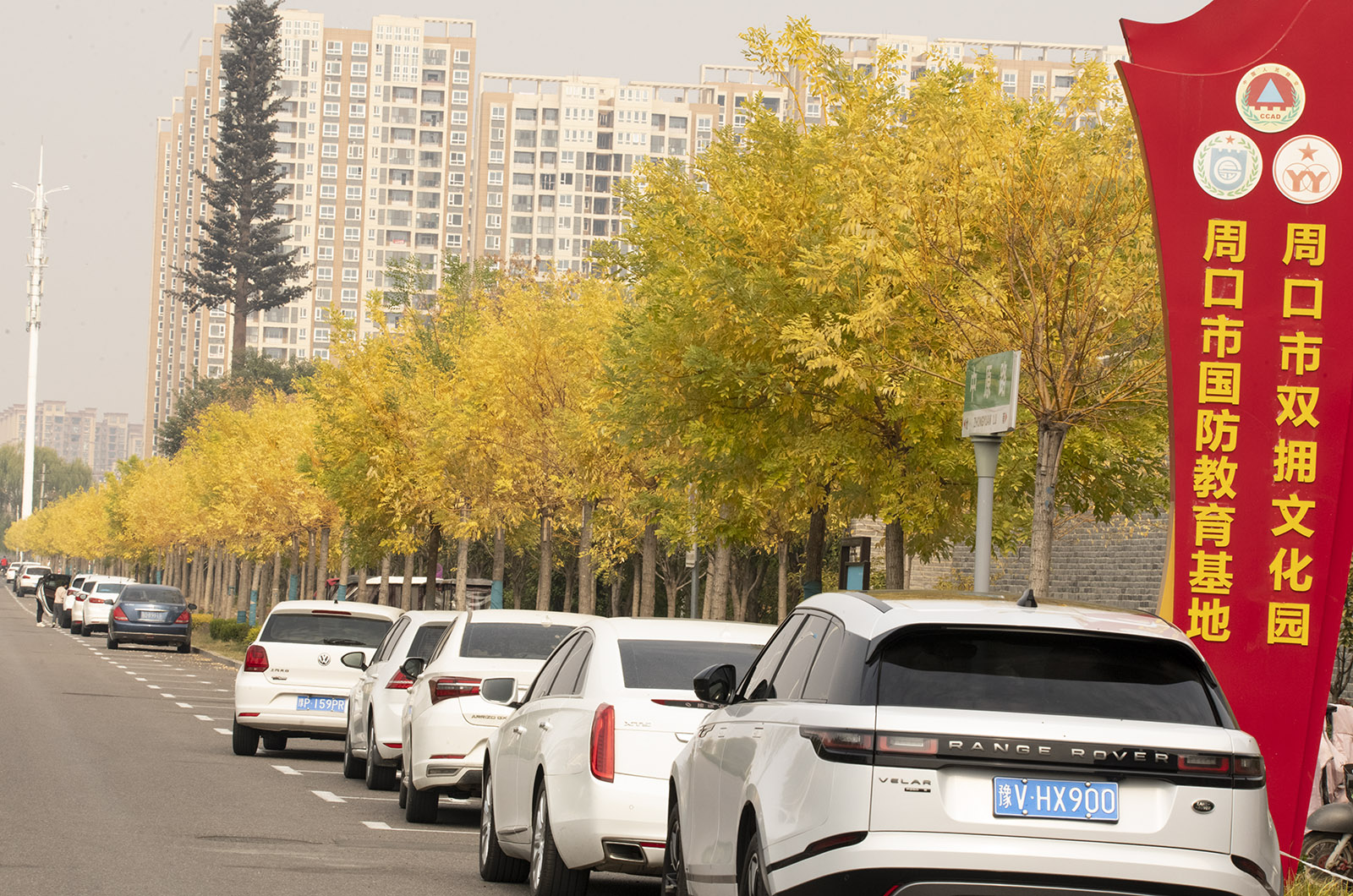 近日,深秋的周口中心城区树叶日渐泛黄,大片的银杏树更是金叶粉披,宛如油画般美丽。记者 梁照曾 摄