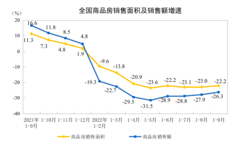 中指研究院指数事业部市场研究总监陈文静分析认为,短期来看,若宏观经济稳定恢复、相关政策积极落地且不出现超预期事件,四季度至2023年年初房地产市场有望企稳,主要表现为房价止跌,销售同比降幅收窄,全年全国商品房销售面积同比降幅或在20%左右。