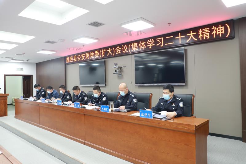 11月3日下午,鹿邑县公安局组织召开党委(扩大)会议,对党的二十大、二十届一中全会精神进行专题学习。鹿邑县副县长、公安局党委书记、局长韩凤城主持会议,局党委班子成员,各科所队室负责人、刑警各中队负责人参加会议。