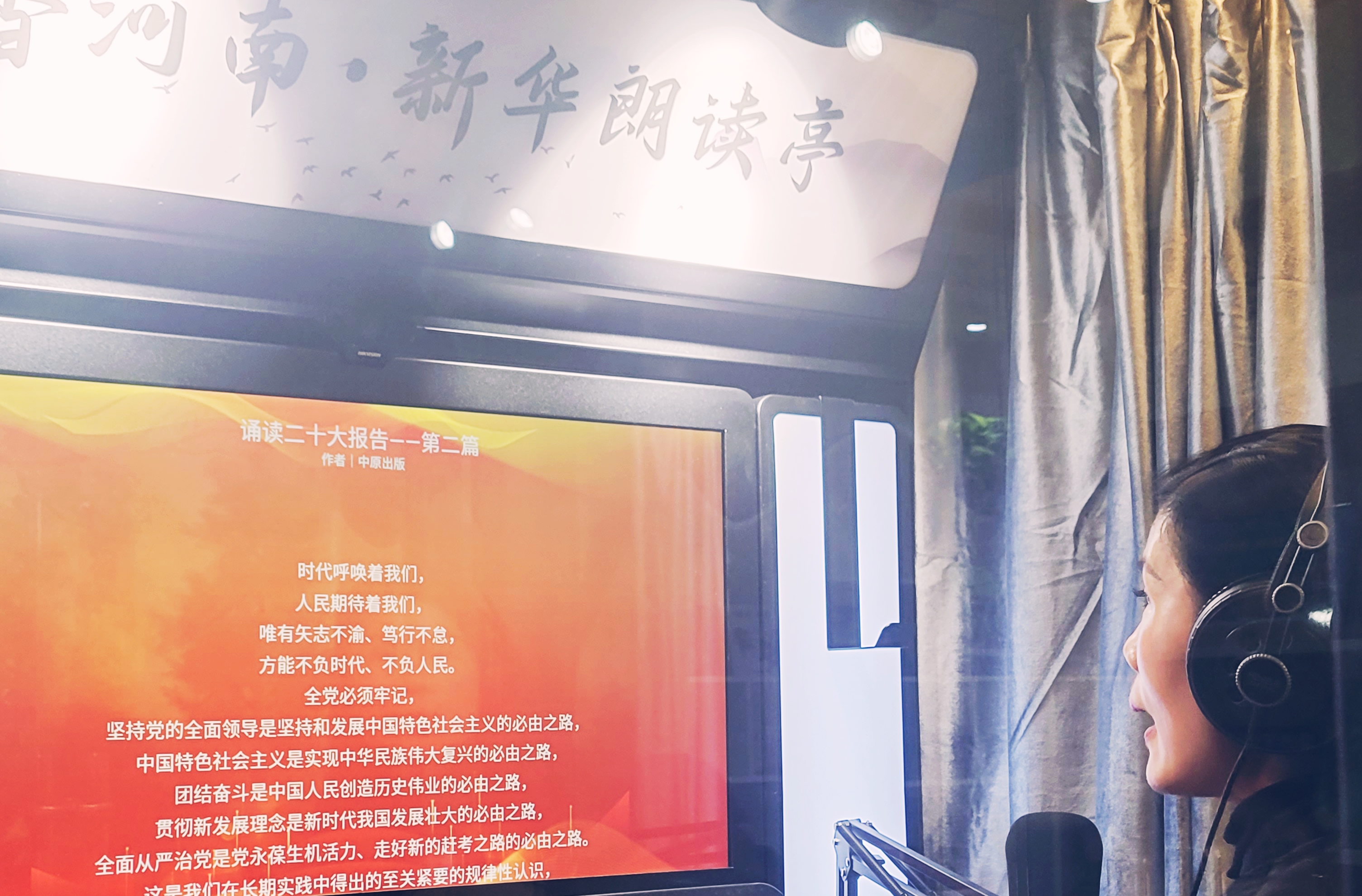 “坚持党的全面领导是坚持和发展中国特色社会主义的必由之路……”11月3日,在位于项城市商城路与西大街交叉口的新华书店诵读亭内,诵读爱好者年秋燕正在选读党的二十大报告原文,其深情且铿锵有力的诵读声令人如痴如醉。