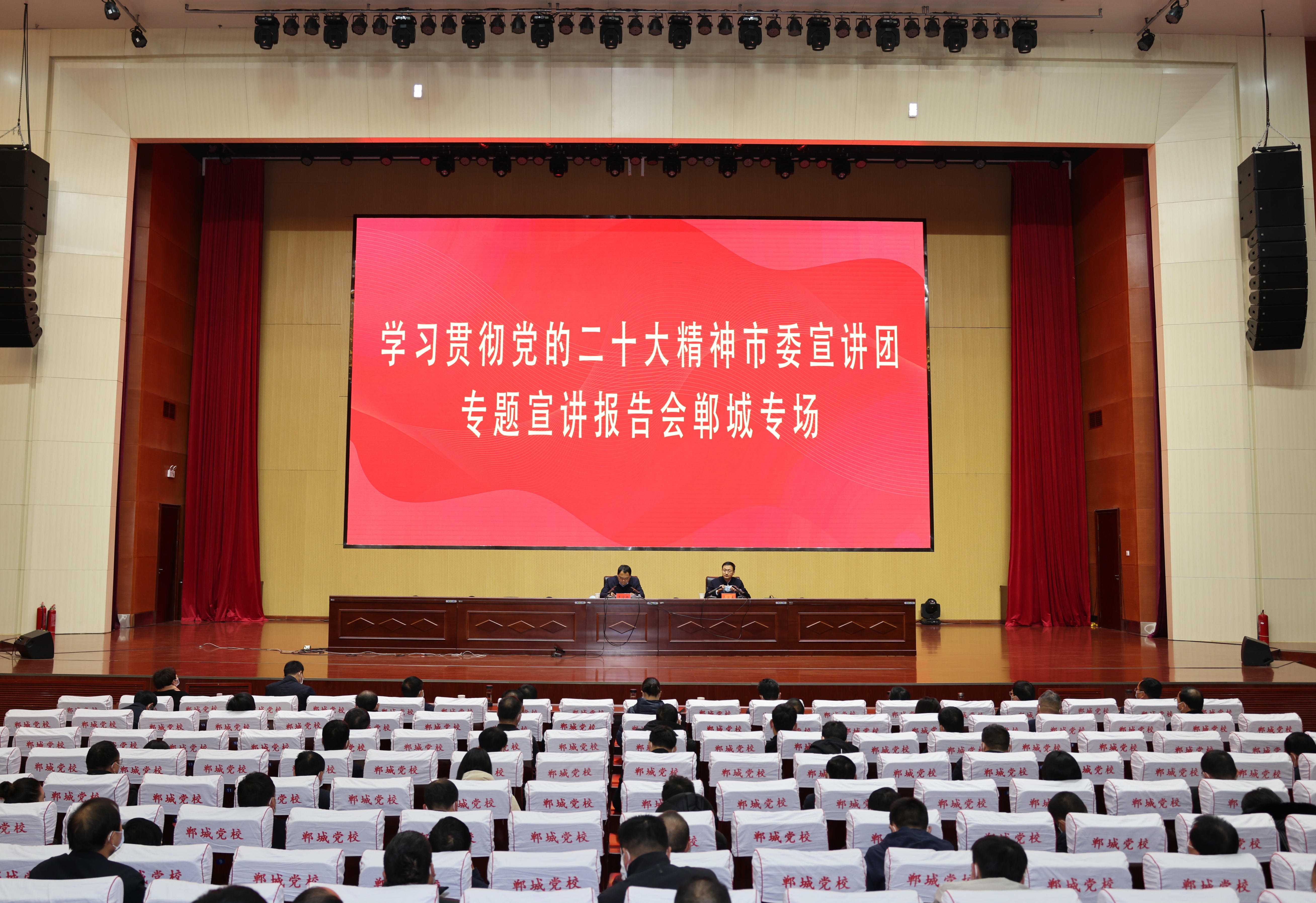 11月27日晚,党的二十大精神市委宣讲团郸城一高专场宣讲报告会举行,党的二十大代表,市委宣讲团成员,郸城一高党委书记、校长刘成章以《学深悟透新精神 培根铸魂育新人》为题作了宣讲报告。400余名师生代表聆听。
