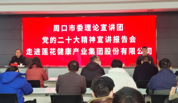 1月11日上午,学习贯彻党的二十大精神周口市委宣讲团成员,项城市委党校机关党支部书记、教研室主任马华斌以《深入学习宣传贯彻党的二十大精神,为全面建设社会主义现代化国家贡献项城力量》为题,走进项城市莲花集团,为全市30多名企业代表作宣讲报告。