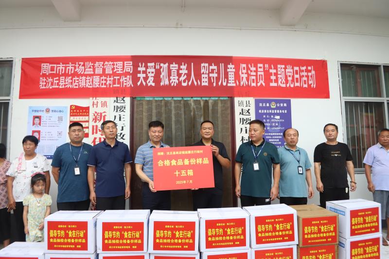 7月19日,周口市市场监管局赴沈丘县赵腰庄行政村开展食品安全抽检合格备份样品捐赠活动,以实际行动践行厉行节约,助力公益的新风尚。