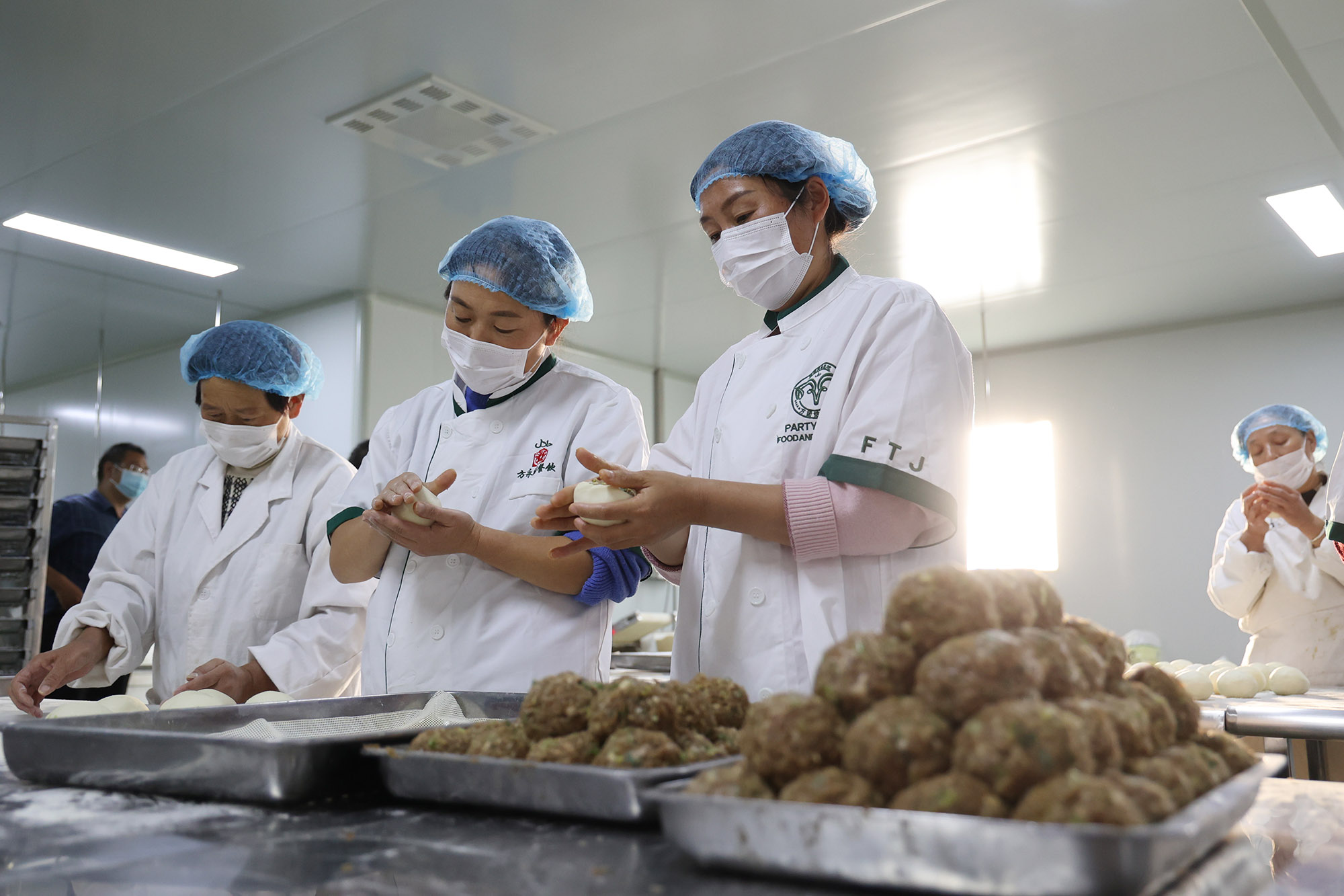 齐天面业有限公司的早餐产业链中的员工手工生产牛肉盒