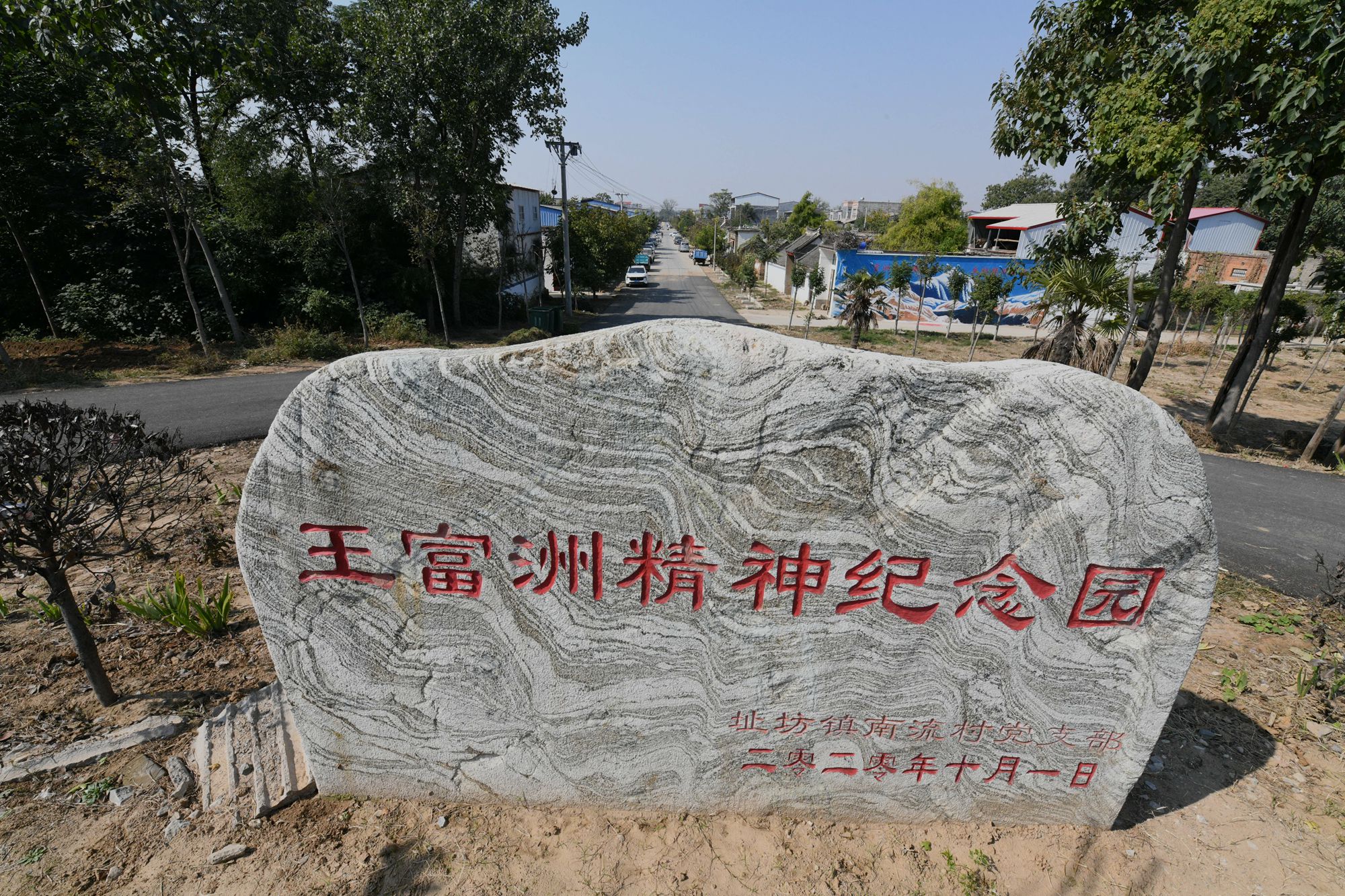 在址坊镇南流村沙河岸边,记者看到,一方巨石上题写的“王富洲精神纪念园”几个大字苍劲有力,附近民居墙上的山水画五彩斑斓、美不胜收。出生于南流村的王富洲带领队友完成了人类历史上首次从北坡登上“地球之巅”珠穆朗玛峰的壮举,这也是南流村“地球之巅”景区的文化渊源。