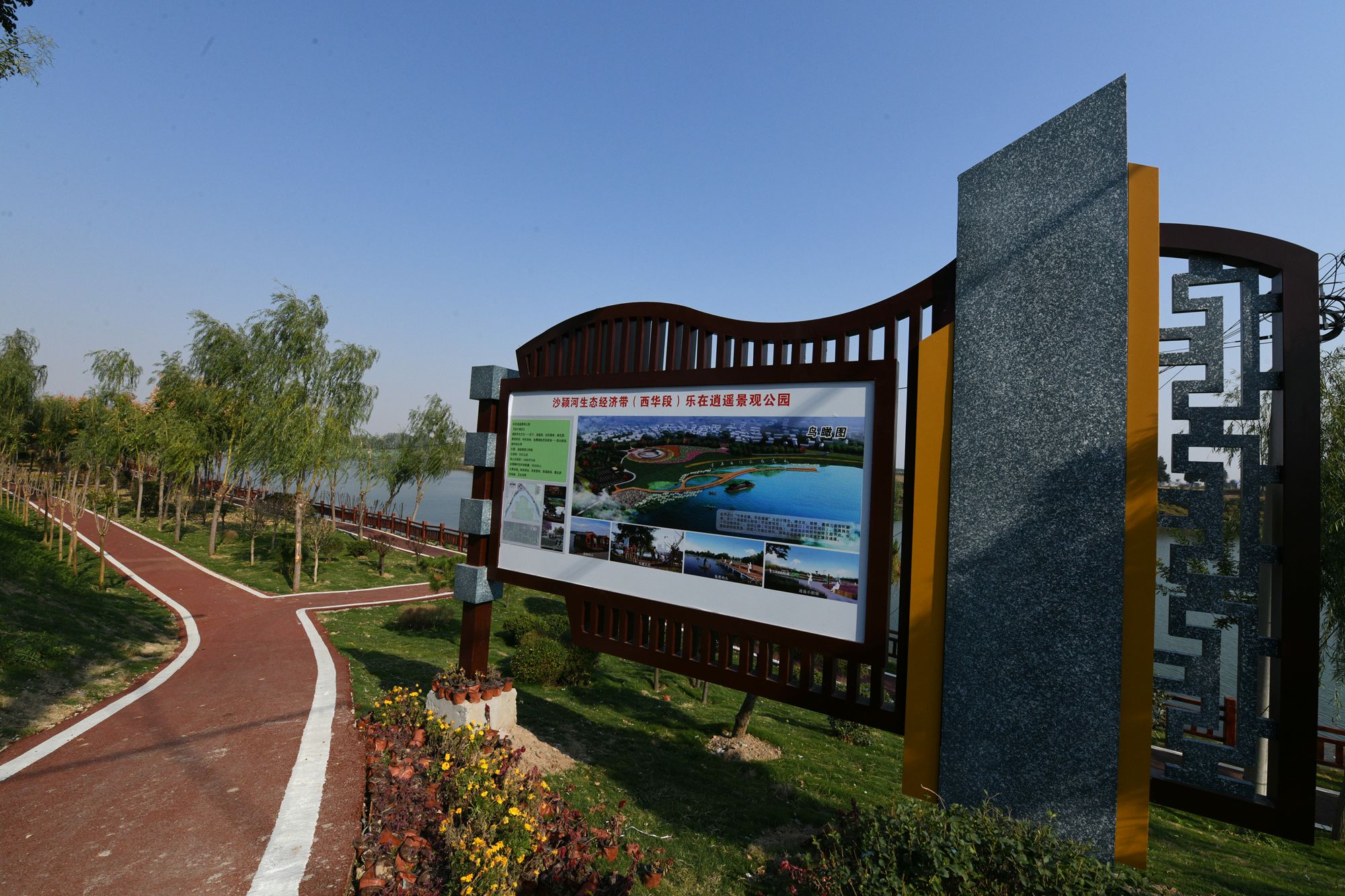 在沙颍河生态经济带的建设上,逍遥镇这颗明珠更加璀璨,此段景观为这座古镇增添了新的时代注脚,关注了新的经济活力,幸福感、获得感洋溢在临河亲水的乡亲们的笑脸上,荡漾在沿河观景的游客们的脚步里。