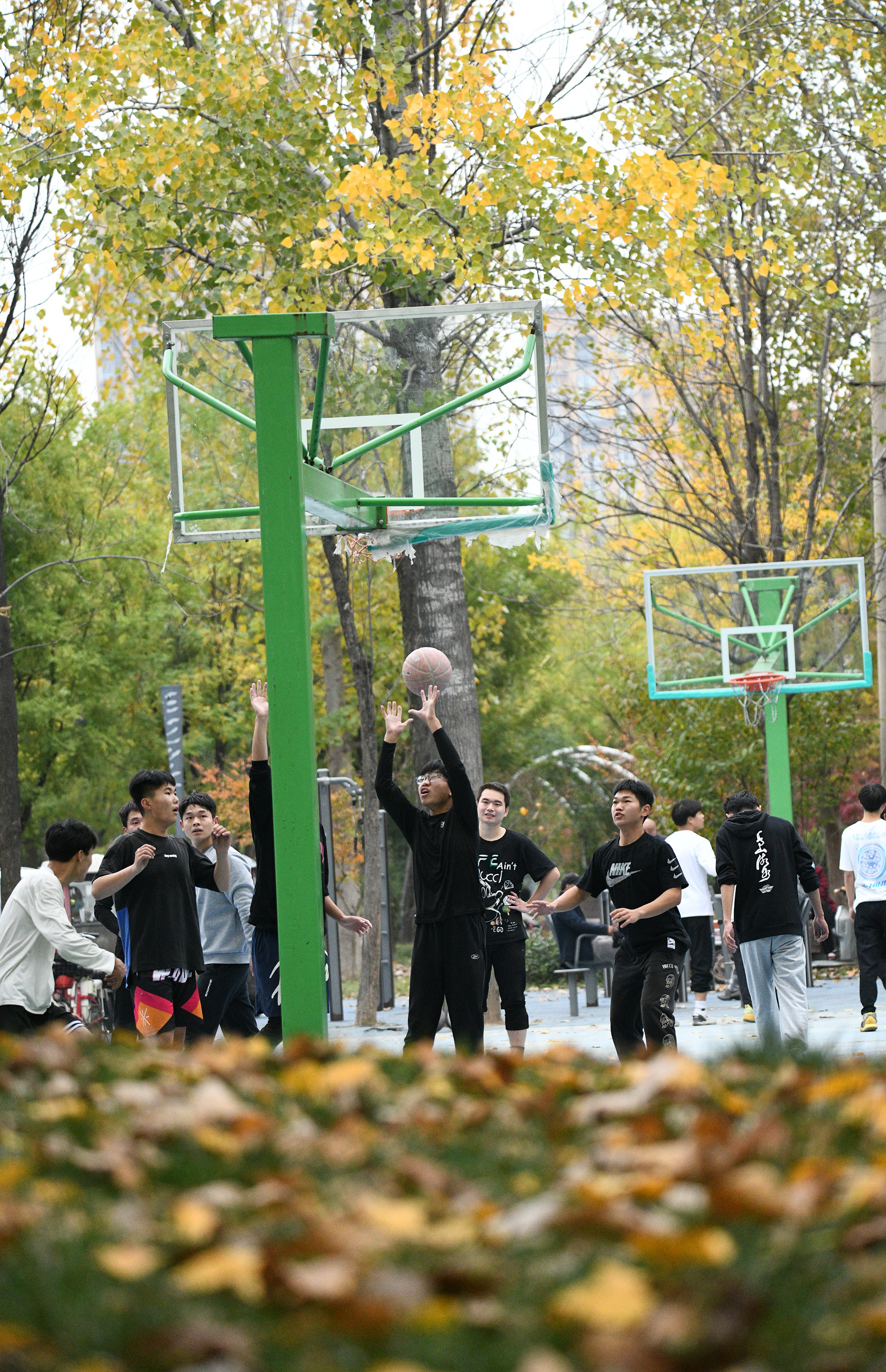 铁路公园篮球场吸引年轻人健身