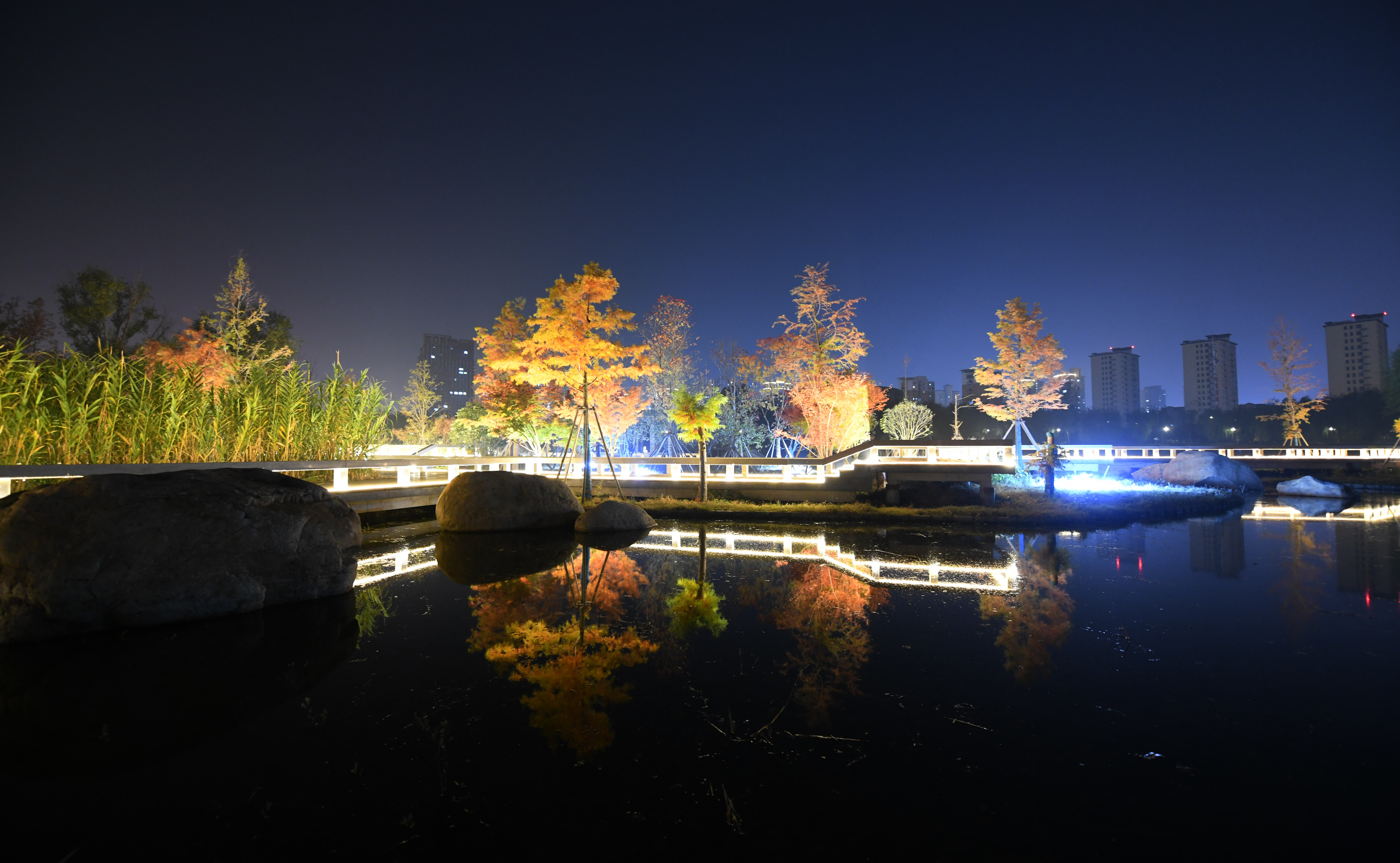 夜色下的周口公园外景一角