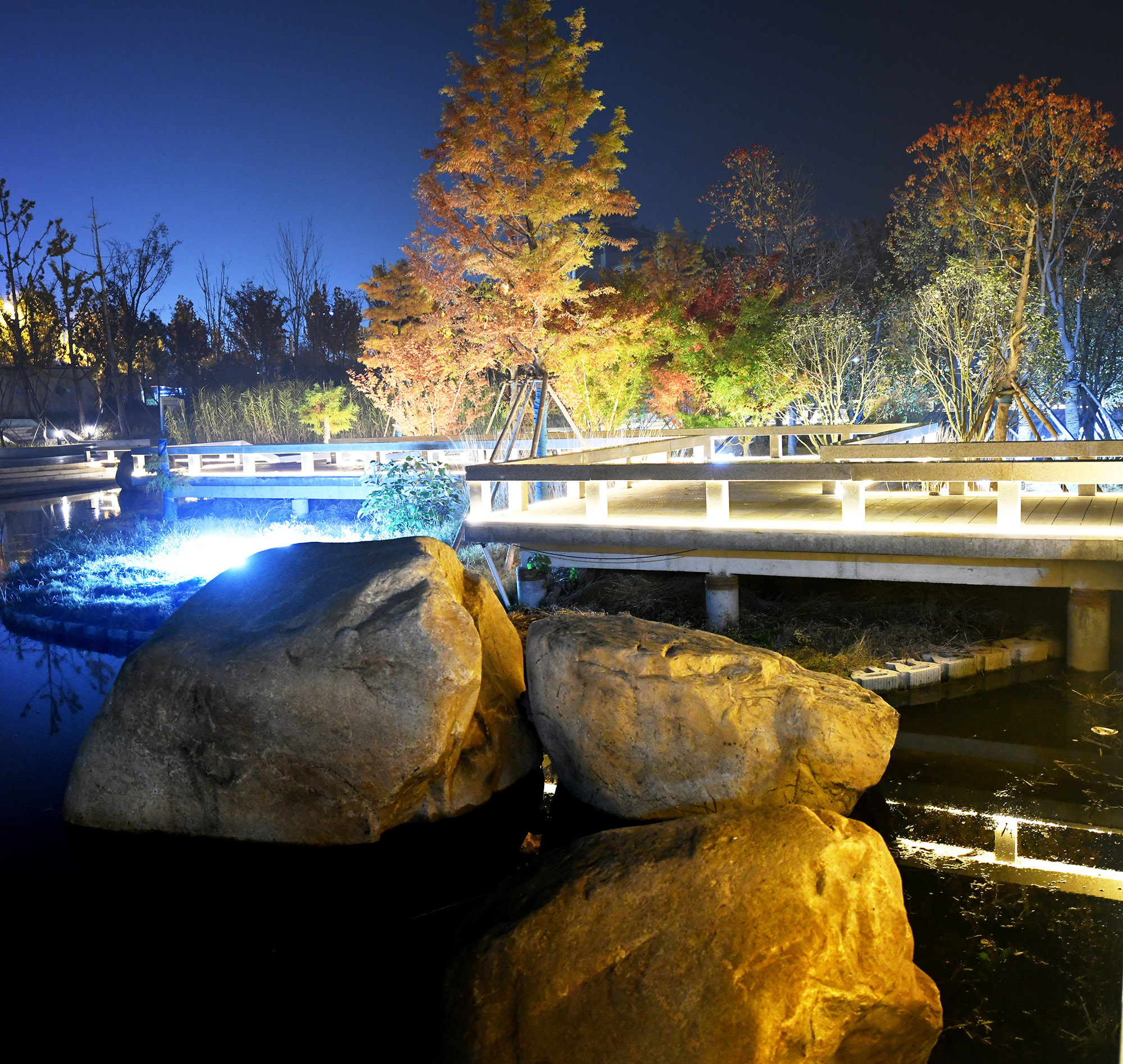 洼冲沟榉园局部秋意斑斓的夜景