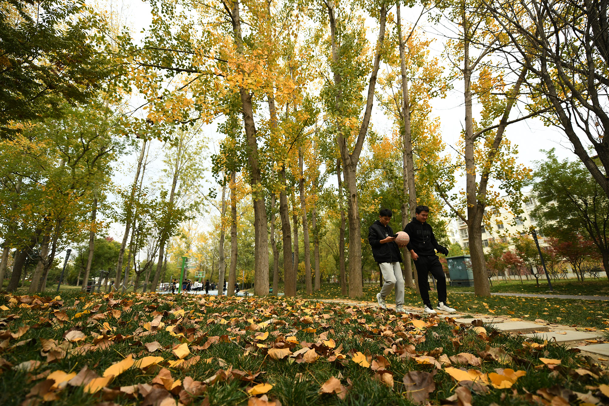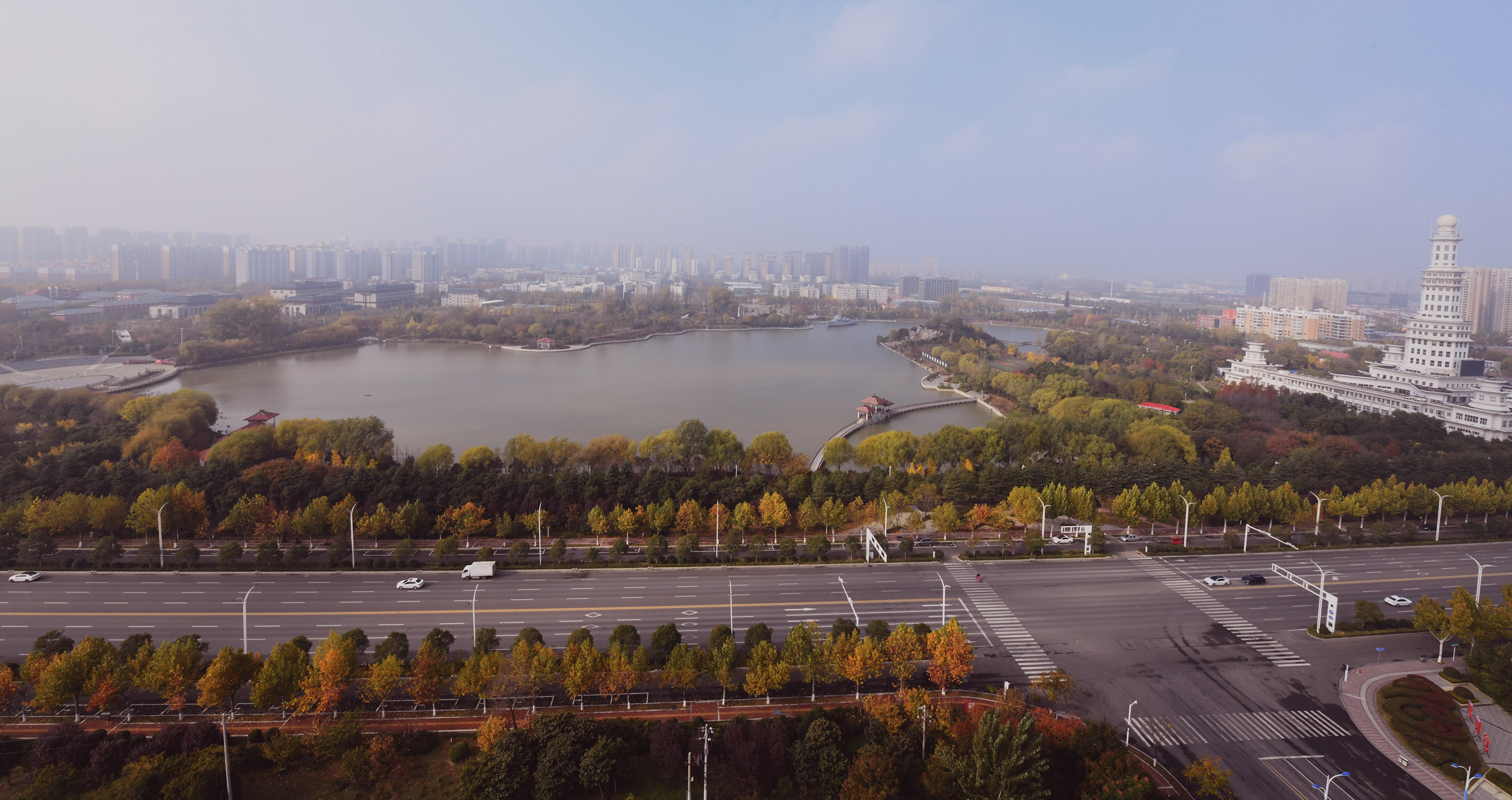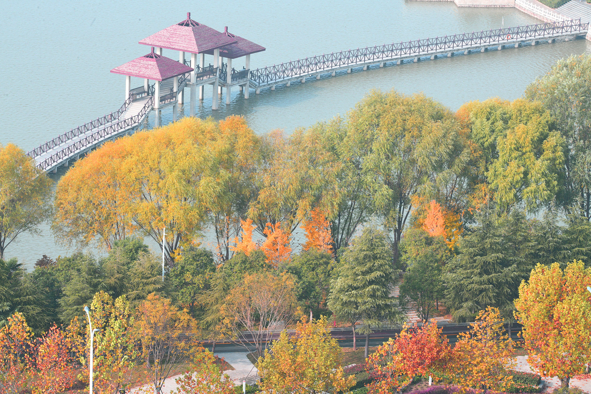 层林尽染的周口公园一角