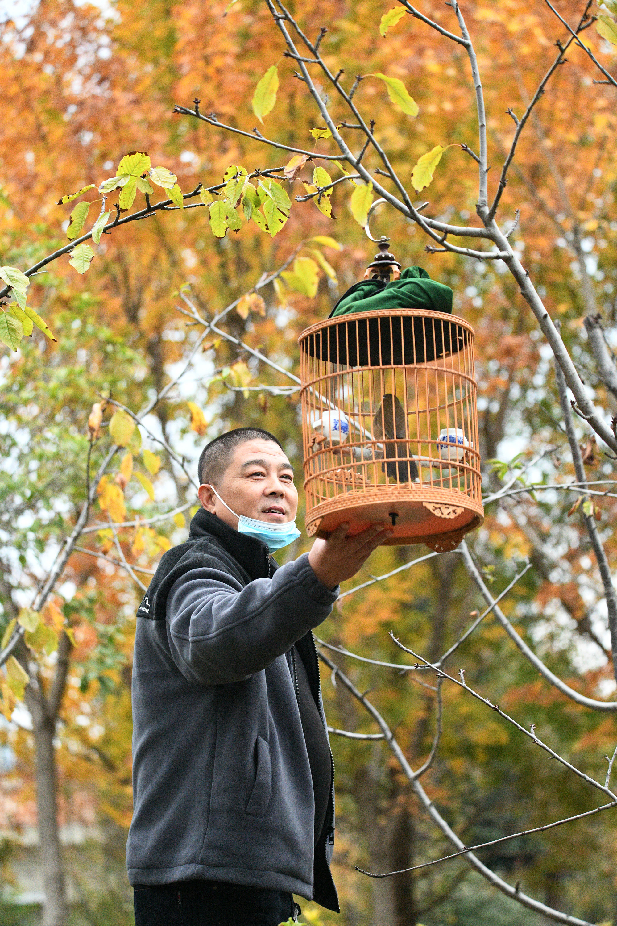 鸟语花香是最美的风景,市民在铁路公园逗鸟