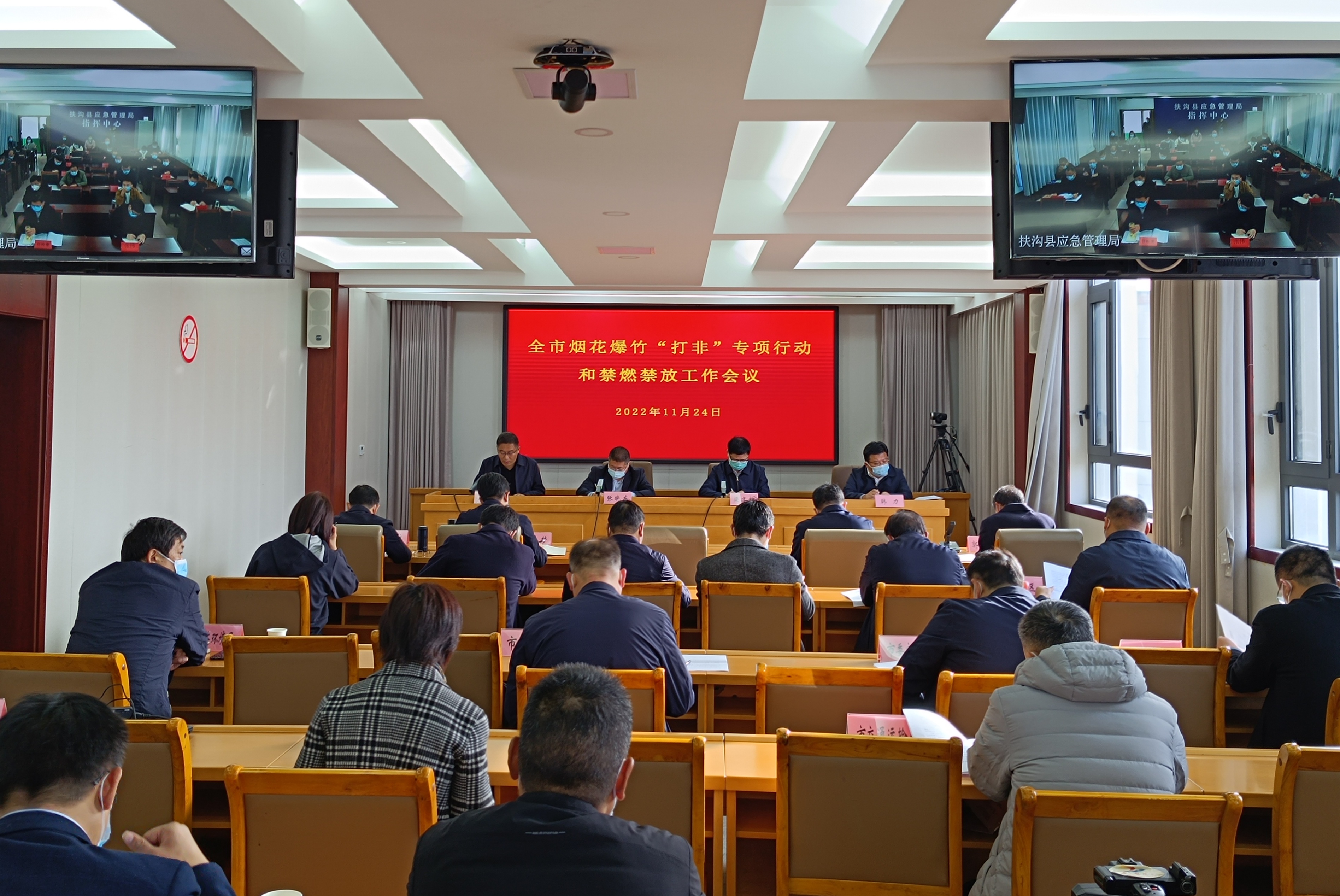 11 月 24 日,全市烟花爆竹禁燃禁放工作会议以视频形式召开,安排部署全市烟花爆竹“打非”专项行动和禁燃禁放工作。副市长梁建松在主会场出席会议并讲话。