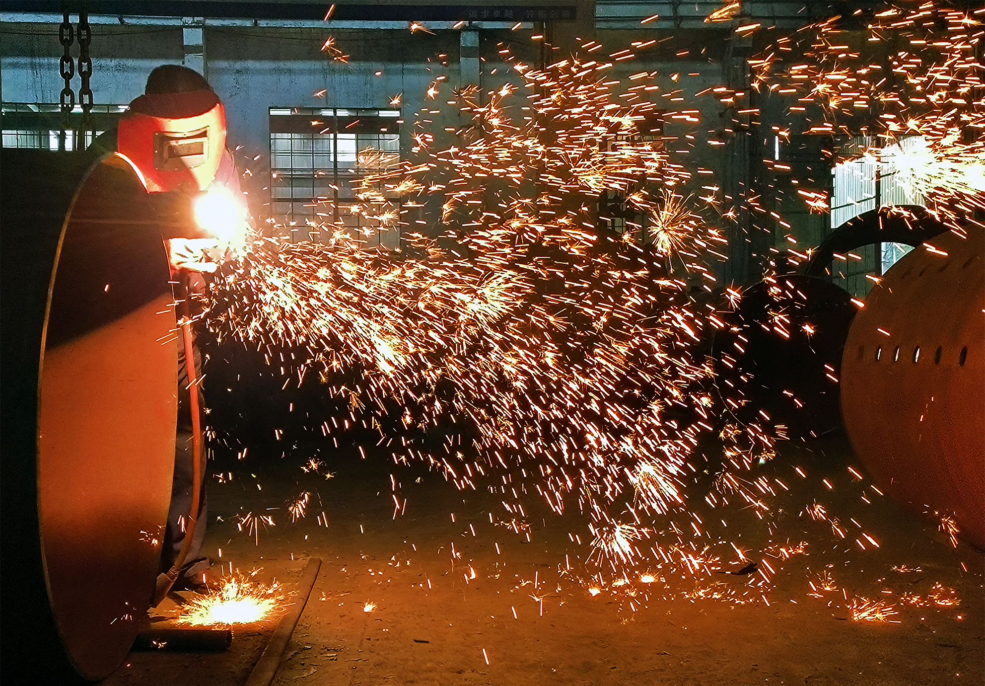 太康县通过设立技术创新专项基金,推进企业智能化改造,引导实施“设备换芯”,使传统产业向高端化转型升级。通过促进企业与科研院校的合作,成功突破了锅炉低氮燃烧技术、控制等技术。图为该县一名锅炉企业员工认真焊接构件。(记者 沈湛 摄)