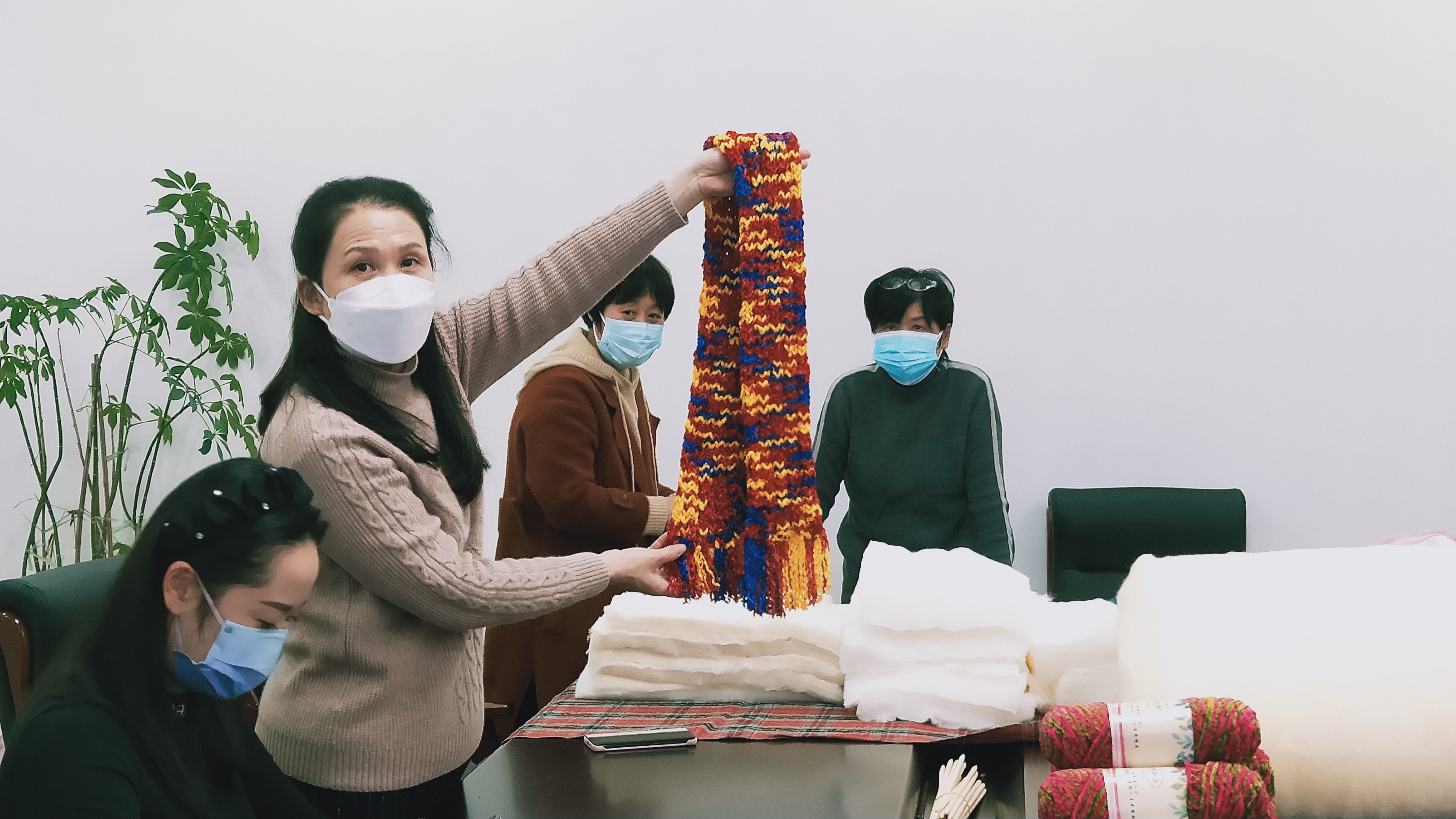 活动现场,周口报业传媒集团姐妹们紧锣密鼓地制作起围巾、坐垫,拿起久违的毛衣针,“围巾、棉垫虽小,寄托了大家对困境儿童无限的爱,既温暖孩子的身体,也温暖了孩子的心灵,希望这些围巾、坐垫赶快送到孩子们手上。”集团妇联主席王娜说。