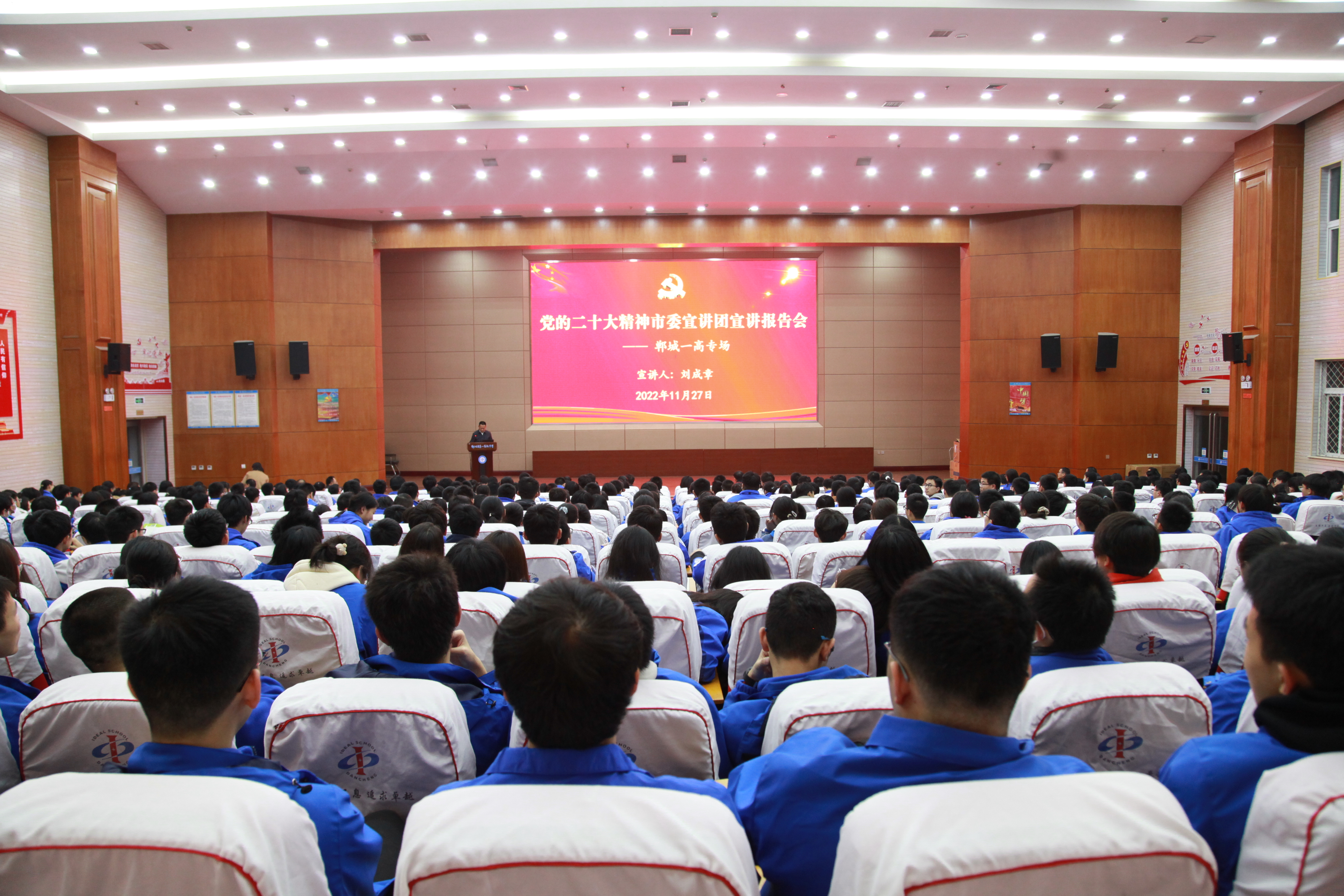 “我们将牢牢抓住国家‘县中提升计划’政策机遇,在教育、教学、服务、管理等方面进行优化与完善,在拉高标杆中争先进位,在加压奋进中开创新局,提升学校办学水平,努力让更多农村孩子接受优质教育,为全面推进乡村振兴提供更强大的人才和智力支撑。”11月27日晚,党的二十大精神市委宣讲团郸城一高专场宣讲报告会举行,党的二十大代表、市委宣讲团成员、郸城一高党委书记、校长刘成章以《学深悟透新精神 培根铸魂育新人》为题作了宣讲报告。400余名师生代表聆听。