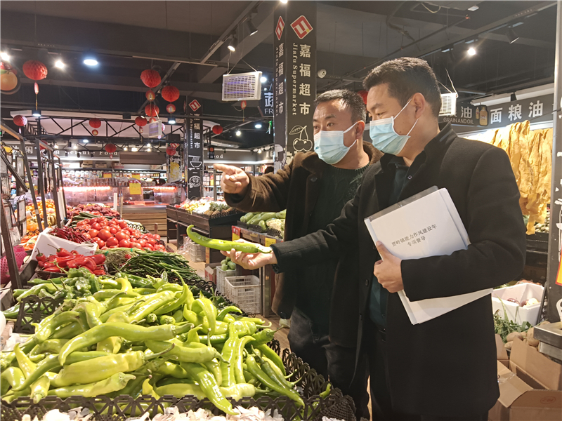 12月1日,贾岭镇纪委组织纪检干部和市场监管力量,深入蔬菜种植基地排查蔬菜种植面积和产量,走进超市了解蔬菜行情,积极为农户和商家搭桥牵线。