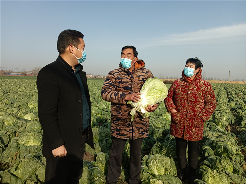 在种植大户闫国荣的白菜地里,贾岭镇纪委书记、监察室主任冯永良与闫国荣夫妇亲切交谈,详细了解采摘、销售、冻害情况。“我家种植的大白菜有50多亩,预计总产量40多万斤,今年的价格与去年同期相比相差1块左右。”闫国荣看着眼前已长成个的大白菜,喜忧参半。