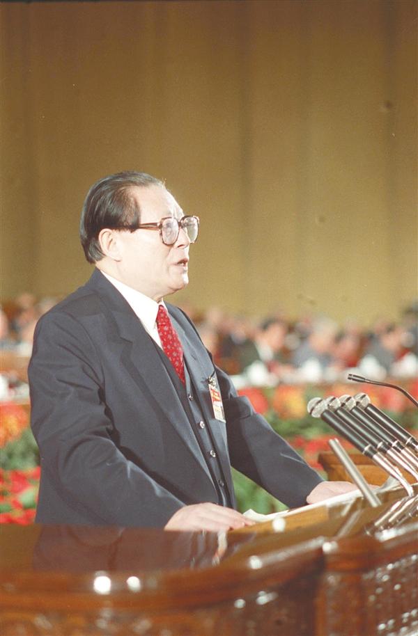 1997年9月12日,中国共产党第十五次全国代表大会在北京人民大会堂开幕。这是江泽民同志代表第十四届中央委员会作报告。