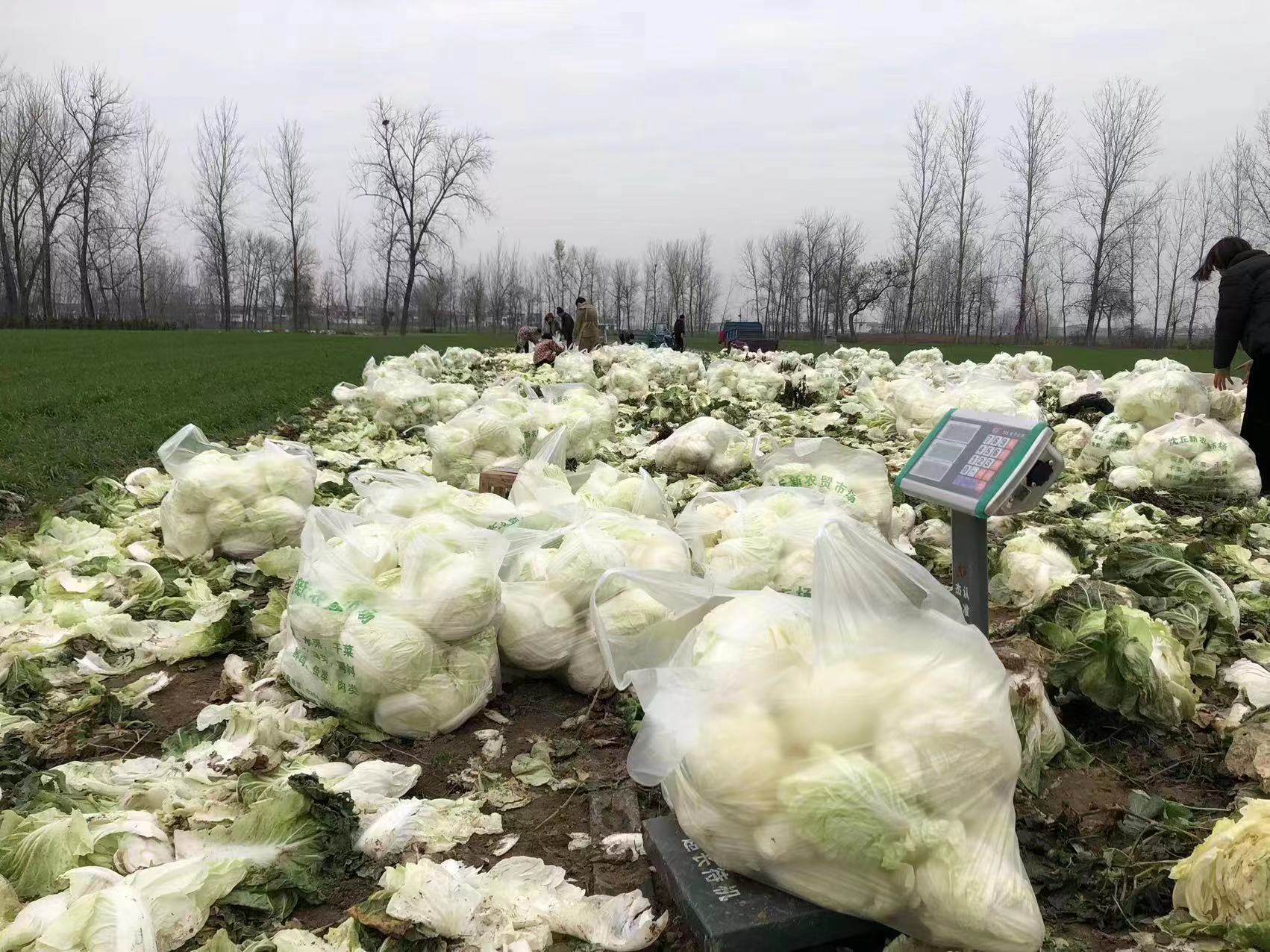 “现在天气越来越冷了,一旦遇到冰冻天气,这些白菜、萝卜就会冻烂,你看这萝卜水灵灵哩,白菜瓷实实哩,坏掉真是太可惜了。”沈丘县卞路口乡肖门行政村菜农肖云峰心疼地说。他今年种植萝卜白菜80余亩,眼看一天比一天冷,可地里的蔬菜一点没销出去,心里非常着急。