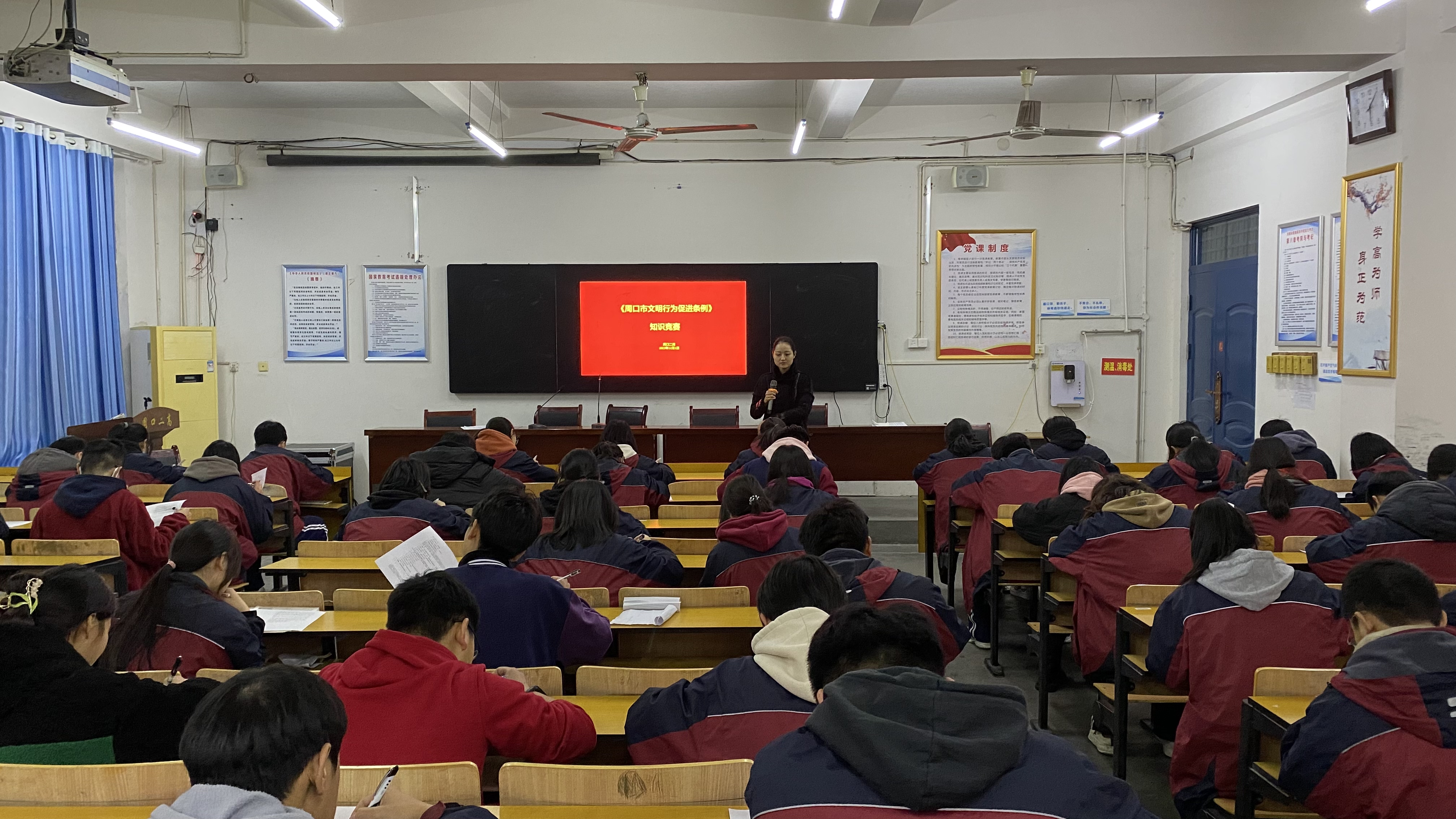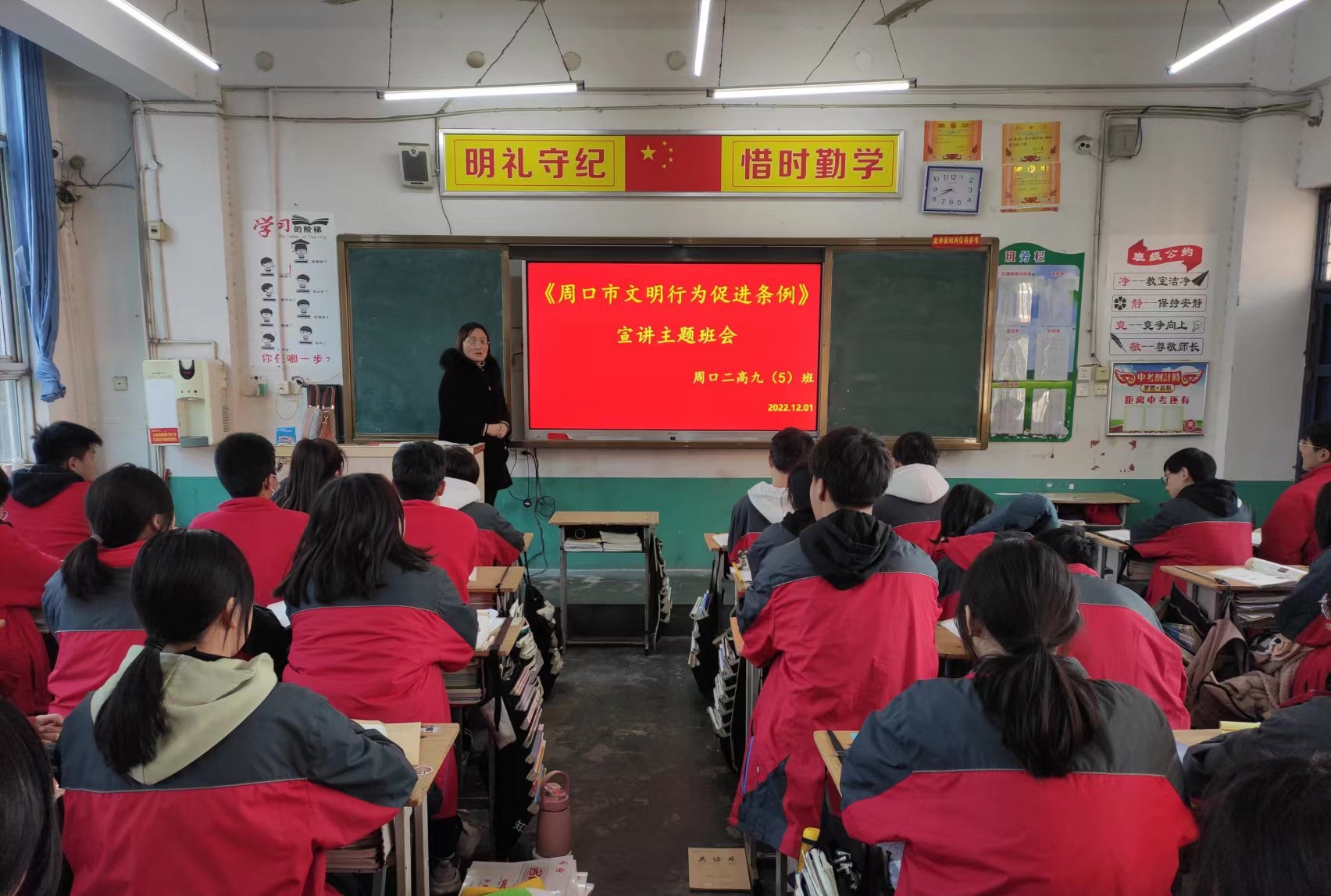 为进一步培育和践行社会主义核心价值观,引导广大学生树立文明观念,展示文明形象,提高文明素养,养成文明习惯,近日,周口市第二高级中学组织学生学习《周口市文明行为促进条例》,开展文明行为规范的主题班会活动。