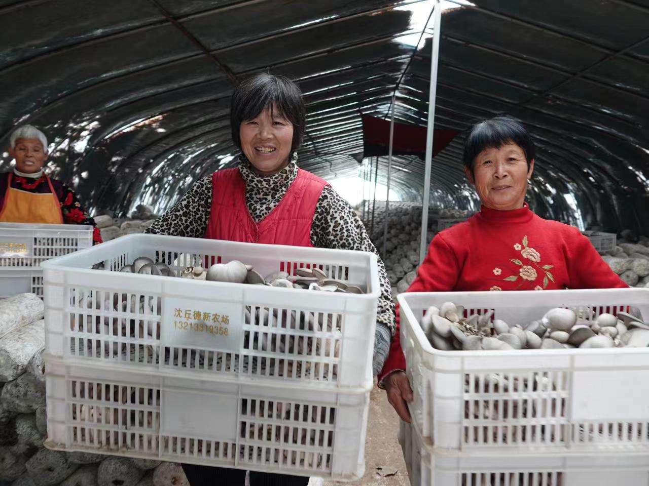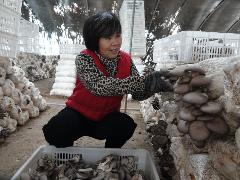 12月13日,沈丘县周营镇黄孟营村平菇种植基地大棚里,留守妇女忙着采摘搬运订单平菇。近期,该县妇联发挥职能协调作用,扎实有效开展巾帼纾困关爱活动,为“巧媳妇”示范工程基地等搭建对接平台,架起扶农助企暖心桥。 (谢辛凌 摄)