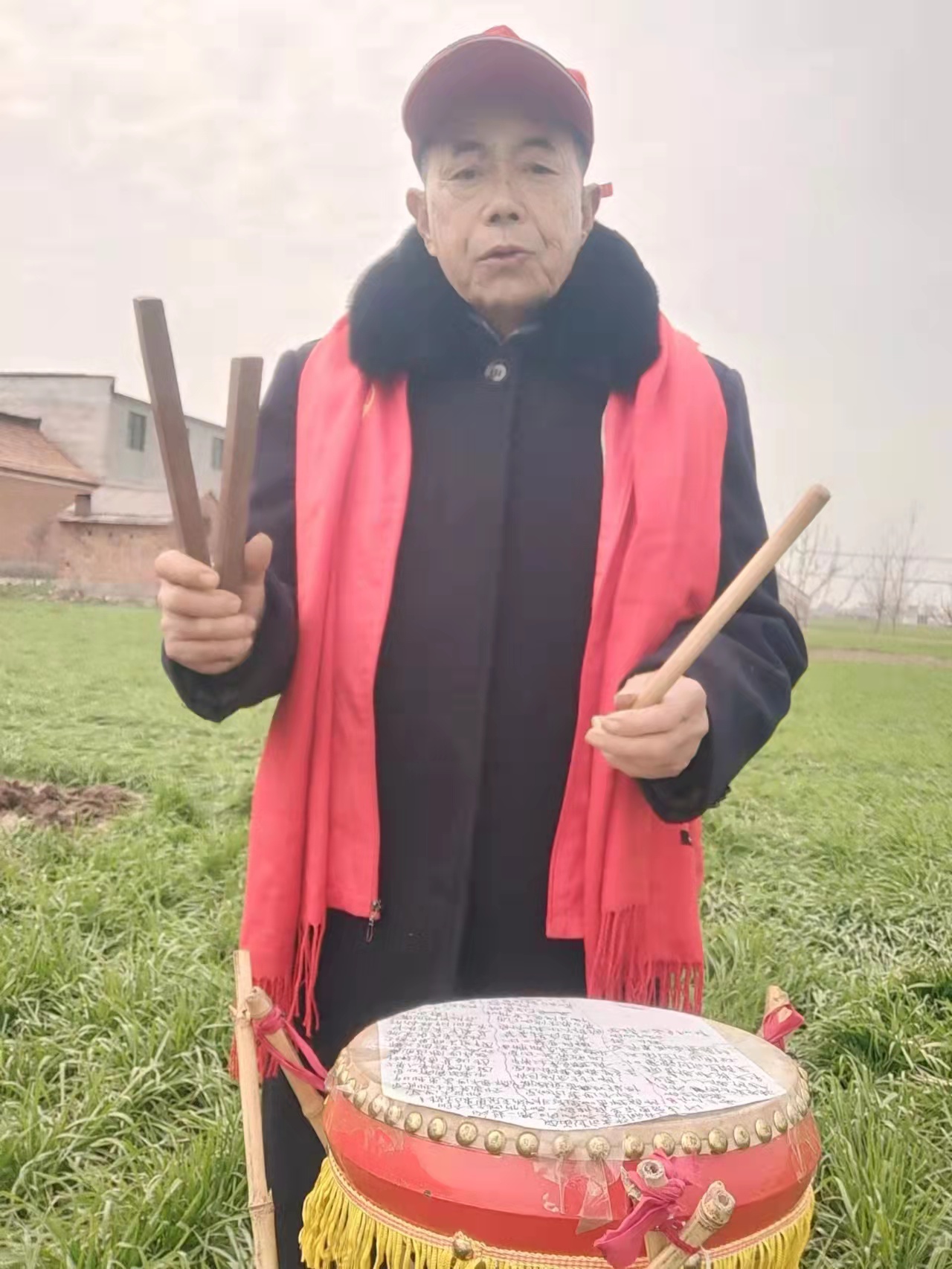 今年67岁的志愿者闫汝才是一名非遗文化“大鼓书”传承人,当团队负责人把创作好的唱词发给他后,闫汝才不顾身体年迈,第一时间到户外进行表演并录成视频,然后上传到了抖音、微信群、朋友圈等新媒体。