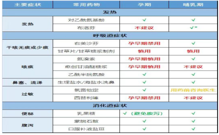 新冠病毒感染妊娠期及哺乳期居家用药清单及建议: